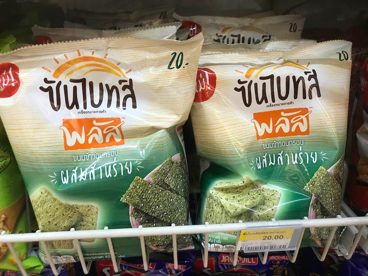 태국 편의점에서는 김으로 만든 다양한 주전부리를 만날 수 있는데 그중 가장 내 취향이었던 김 과자. 태국인 친구가 추천해줘서 한 개 맛봤다가 정말 빠져든 과자다. 김맛이 나는 약간 도톰한 스낵인데 너무 바삭하지 않은 식감에 씹을수록 입안 가득 김 특유의 향이 기분 좋게 올라 운다.
