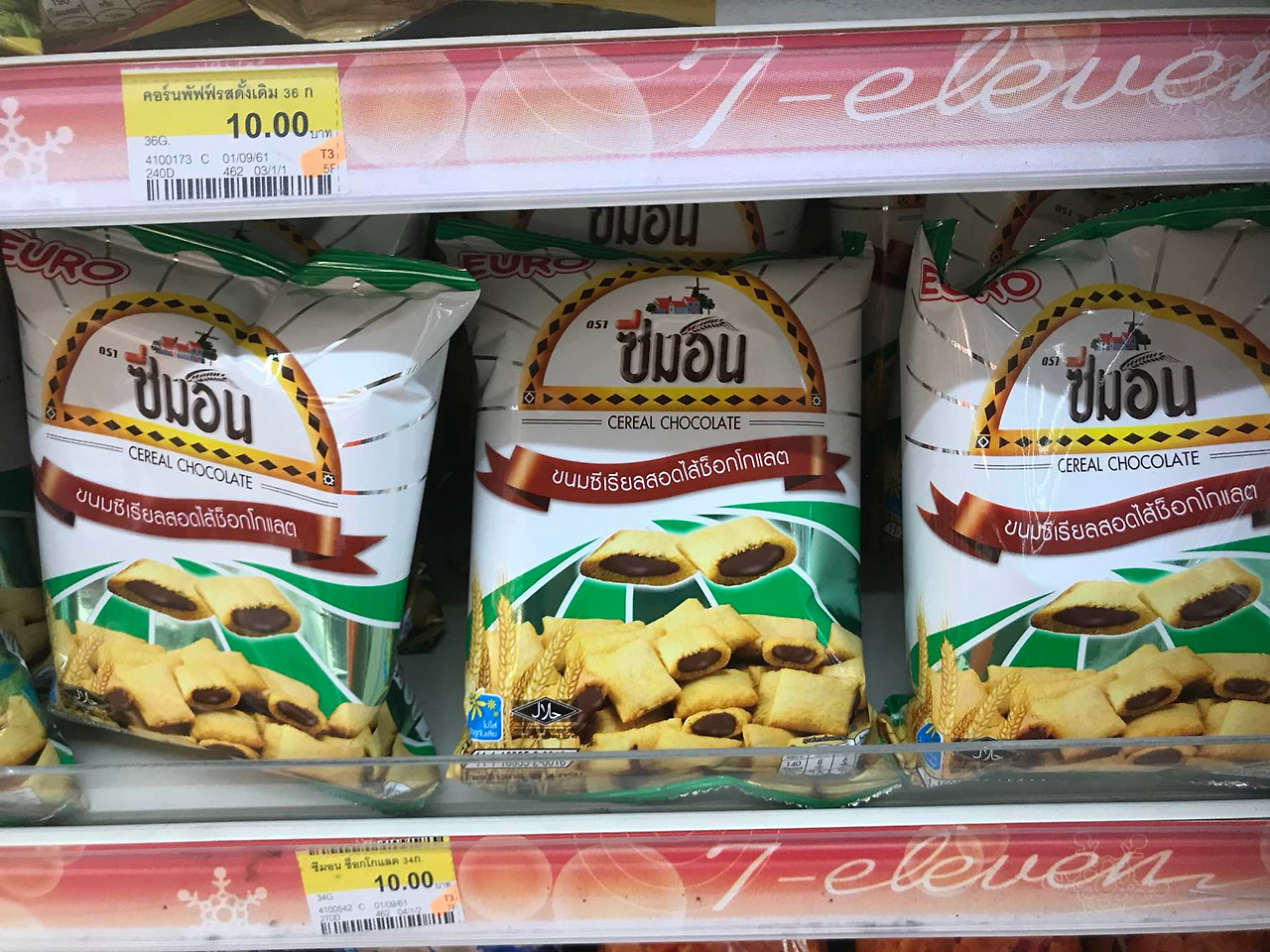 이 또한 한국의 시리얼이 먹고 싶어서 먹어본 과자. 하지만 겉이 딱딱하고 달짝지근한 한국의 시리얼과는 달리 겉 식감이 분유를 먹는 듯 부드럽게 녹아내린다. 안에 초코 맛이 조금 떨어지는 데다가 본인은 분유 맛을 썩 좋아하지 않아서 한번 경험으로 족했다. 태국판 초콜릿 과자를 도전해보고자 한다면 추천!