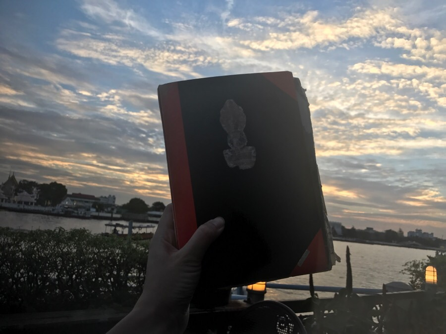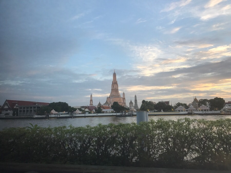 이윽고 해가 저물었다. 약속한 시간에 맞춰 우리가 잠시 빌린 테이블의 주인이 왔다. 아쉬운 마음에 저 멀리 보이는 새벽사원을 한번 더 바라보았다. 나는 한낮에 들은 새벽사원의 풍경소리를 강 건너편에서도 들을 수 있었다. 그렇게 나는 여행을 추억하고 언제든 그 안에 머물 수 있는 방법을 체득하게 된 것이다.