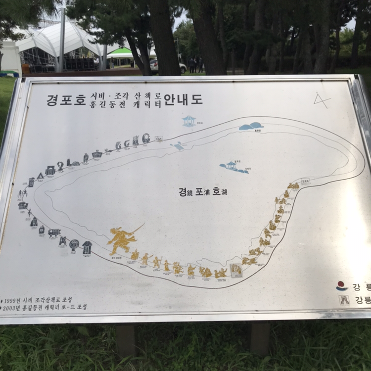 강릉 경포호에는 소나무 숲이 있어 한층 멋을 더했다. 고즈넉한 풍경에 잠이 쏟아졌지만 무더운 날씨에 금방 산책을 마쳤다.
