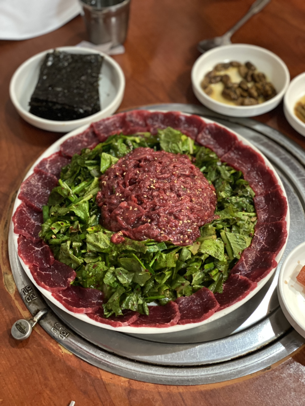뭉티기+육회 세트를 주문해서 맛있게 먹었다.