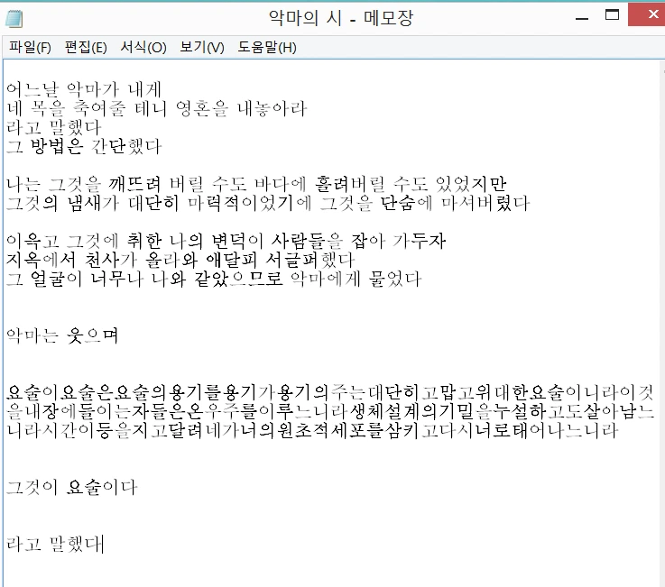 바깥의 고성이 점점 더 커지고 내 귀의 노랫소리도 바깥의 빗소리도 그 소릴 묻어주기에는 한계가 있어 글을 쓸 집중력마저 잃었으므로 어제 쓴 금주 장려 시를 두고 글을 마친다.