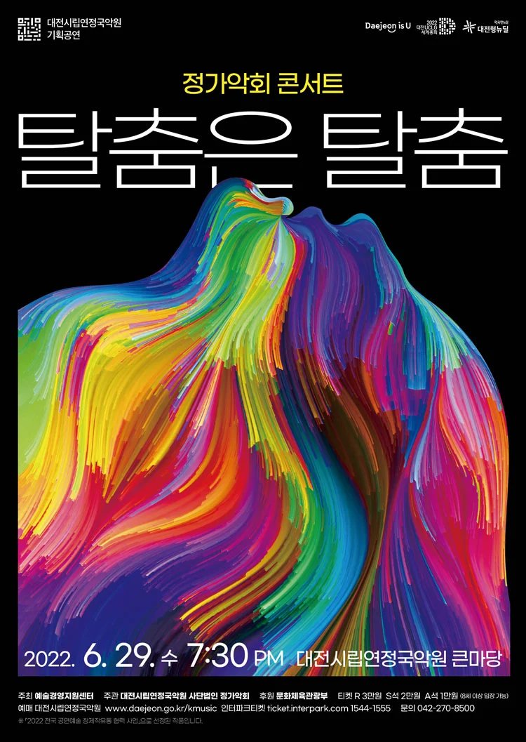 6월 29일, 대전연정국악원에서 열린 <탈춤은 탈춤> 공연. 이 무대를 알게 된 것은 또다른 국악 공연에서 배부된.어느 한 팜플렛 속에서였다. 붓으로 덧칠한 것만 같은 포스터가 어쩐지 예전에 인상 깊게 보았던 <타오르는 여인의 초상> 포스터와 닮아 있어서 무심코 눈길이 갔다. <굿 세워라 금순아>에서 금순이가 마침내 굿을 세웠는가 안 세웠는가는 해당 편에서 다루도록 하고, 그럼 누가 무대에서 뛰놀았는가부터 살펴보자.