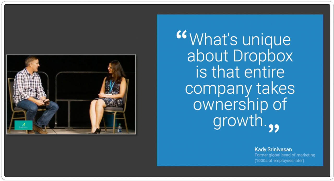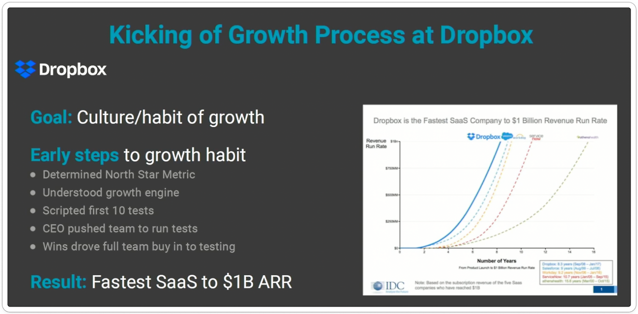 Sean은 그로스 컬쳐의 중요성을 직접 경험한 사람이다. 그는 드롭박스가 $1B ARR (연간 반복 수익 10억 달러) 고지를 가장 빠르게 밟게 해준 요인으로 '그로스 컬쳐'를 뽑았다.
