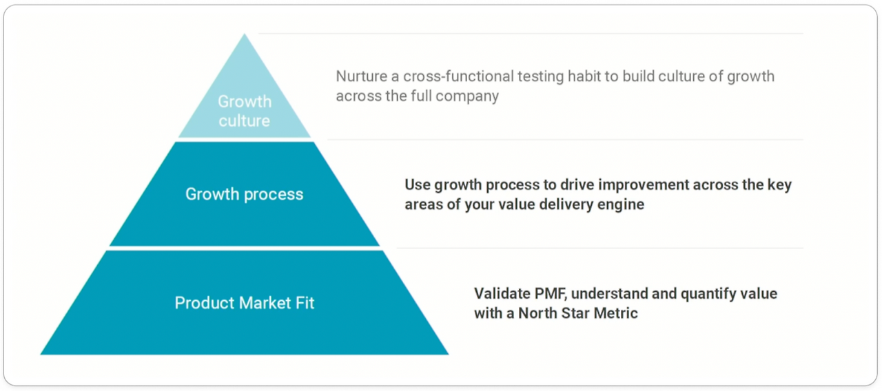 위 피라미드는 Sean이 그로스 컬쳐를 설명하며 특히 강조한 그림이다. 의미는 "PMF를 확보하고, 올바른 그로스 프로세스까지 사용할 수 있게 된 후에야 전사적 개념의 '그로스 컬쳐'를 갖출 수 있다."