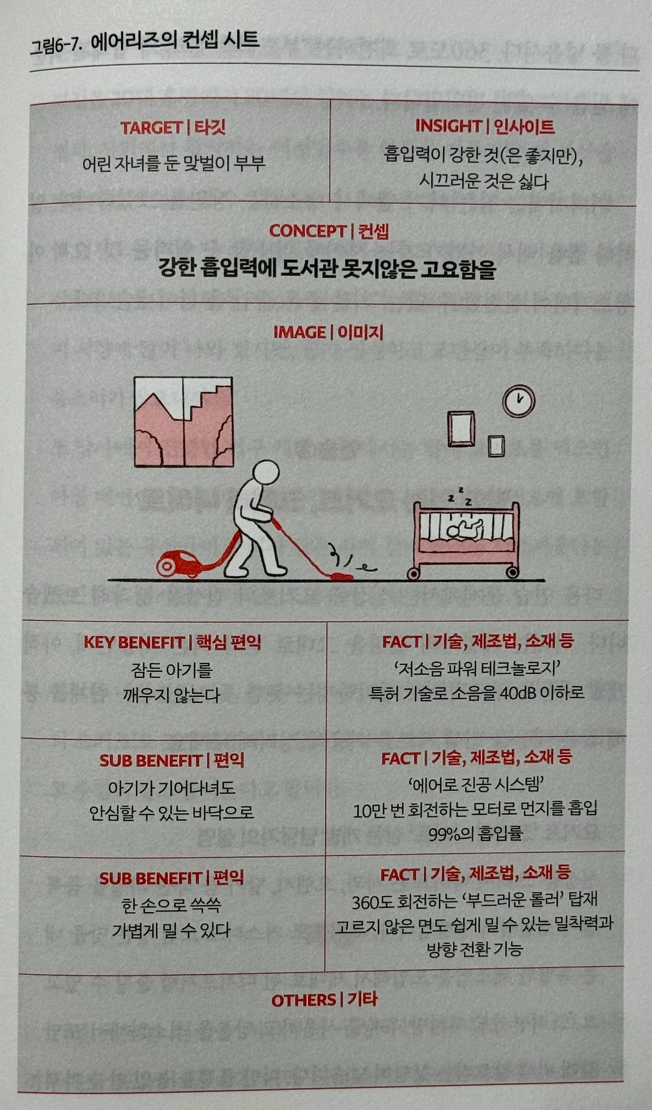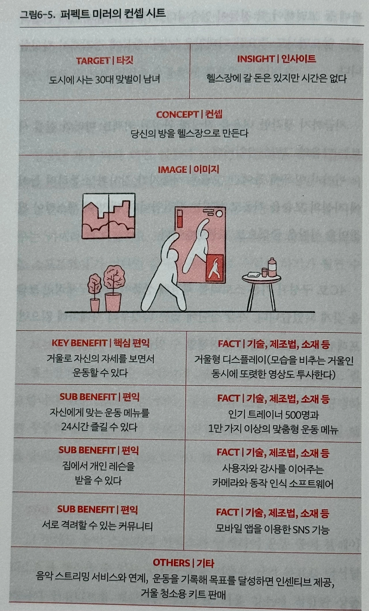 아래 이미지는 책 속의 실제 예시이며, 저자가 의도한 바를 파악하는 데 도움이 될 것이다. 개인적으로 컨셉 시트 작성법만 잘 터득해도 컨셉에 대한 이해도가 많이 높아질 수 있다고 생각한다.
