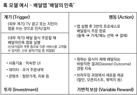 ・Nir Eyal의 저서, <Hooked>에서 소개된 프레임워크이다.