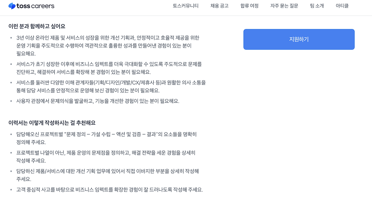가끔 Product Manager 인턴 포지션이 공고로 나오기도 합니다. 쉽게 나오지 않는 포지션이니 잘 준비해서 지원해 보시길 바랍니다.
