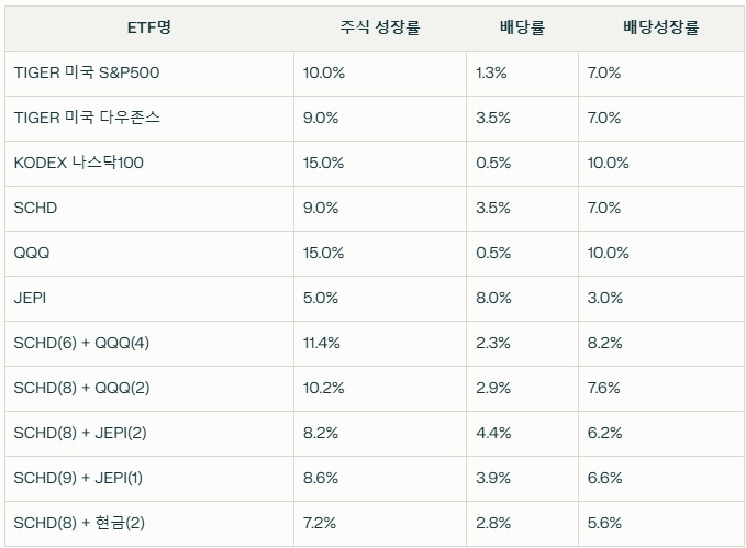 하단에는 내가 GPT와 함께 주요한 ETF와 효과적인 조합을 구성한 부분이다.