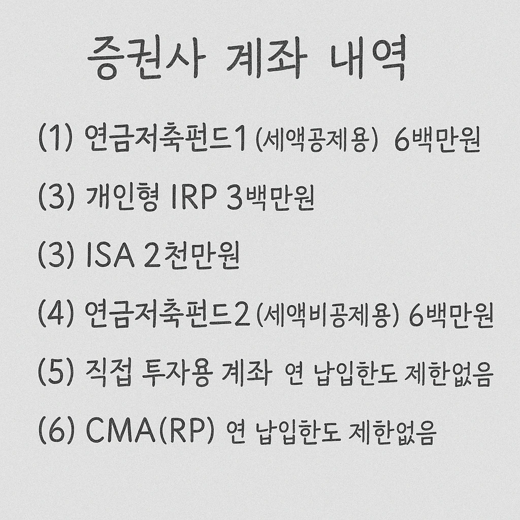 증권사에서 구성한 세부적인 계좌는 다음과 같다. 계좌 작성 순서는 혜택에 따른 납입 우선순위 기준이다.