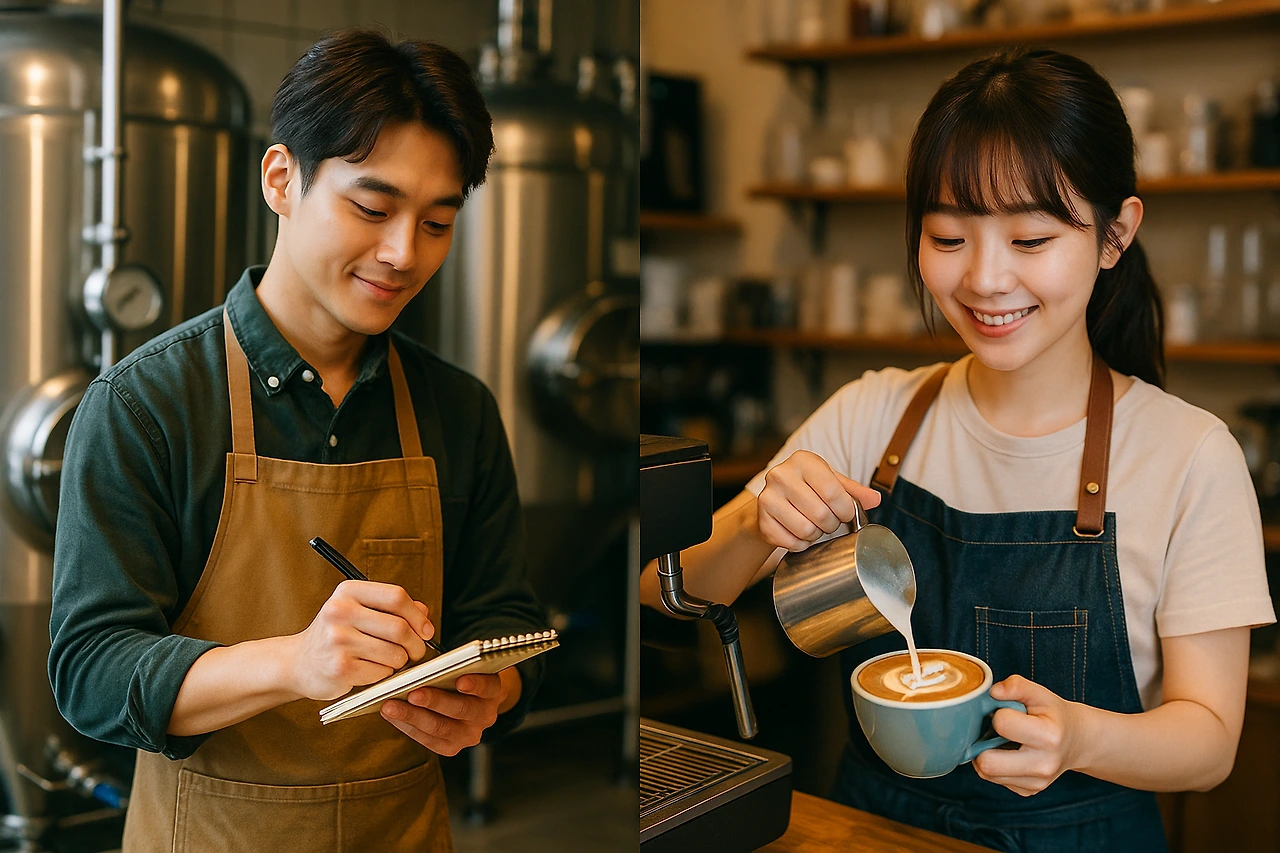 남편은 동네 브루어리에서 주 4일, 하루 4시간씩 일한다. 책으로 공부하던 맥주 제조는, 실무에서는 전혀 다른 세계다. 수제 맥주를 접하고 배합 과정을 기록하는 이 파트타임은, 남편에게 창작과 배움의 연장선이다. 아내는 이따금 이웃 카페에서 바리스타로 일한다. 라테 아트를 배우고, 직원들과 소소한 커뮤니티를 만들어간다. 오전 8시~오후 2시까지 일한 뒤, 나머지 시간은 온전히 부부의 몫이다.