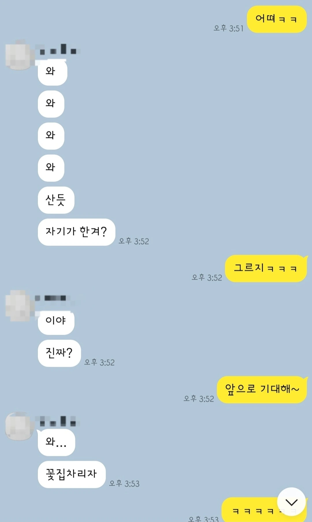왠지 백종원을 떠올리게 하는 투박한 충청도 토박이 남편. 그런 남자에게서 이런 반응이 나올 줄이야. 여태껏 살면서 가장 큰 호들갑 칭찬이 아니었나 싶다. 이 남자, 고래도 춤추게 한다는 칭찬 기법을 쓴 게 아닐까 잠시 상상했다가, 이왕 치솟은 광대뼈의 고도 유지를 위해 글자 그대로 받아들이기로 한다. 예상치 못한 남편의 한 마디에 '꽃집 주인'을 상상해 보며, 옆사람의 반응이 얼마나 큰 역할인지 다시금 깨닫는다.