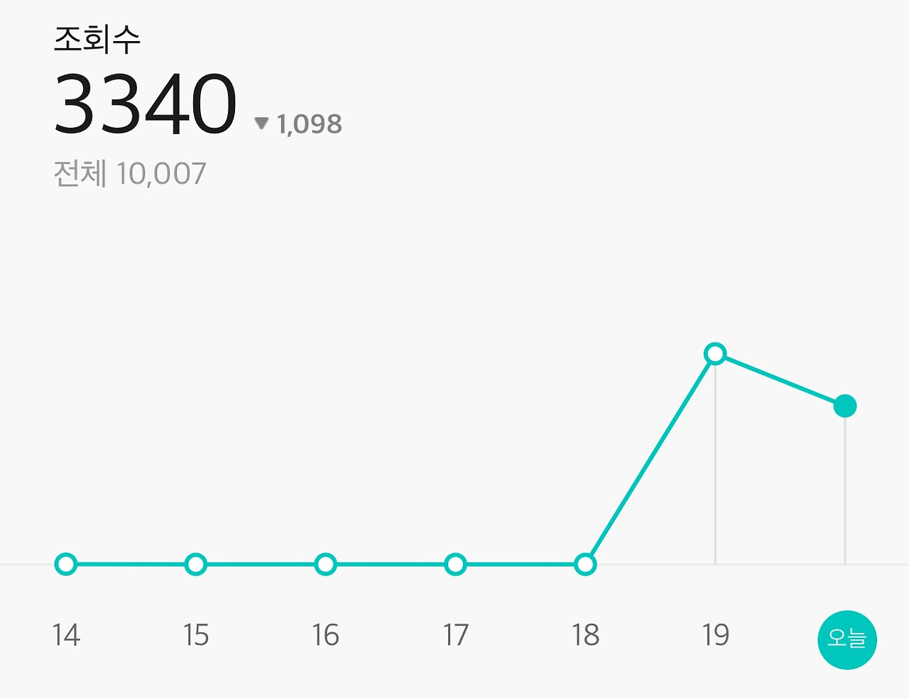 꼭꼭 숨어있는 것도 아닌데, 한참만에 조회수 그래프를 찾아냈다. 바닥에 깔려있던 벼룩 같은 점이 갑자기 점프를 한 듯한 모양새에 태그를 잘 걸었나 생각했다. 검색해서 안 나오는 게 없는 세상, '다음'에 게시되는 경우에 그럴 수 있다는 걸 알고는 메인에 게시되어 있는 내 글을 찾을 수 있었다.