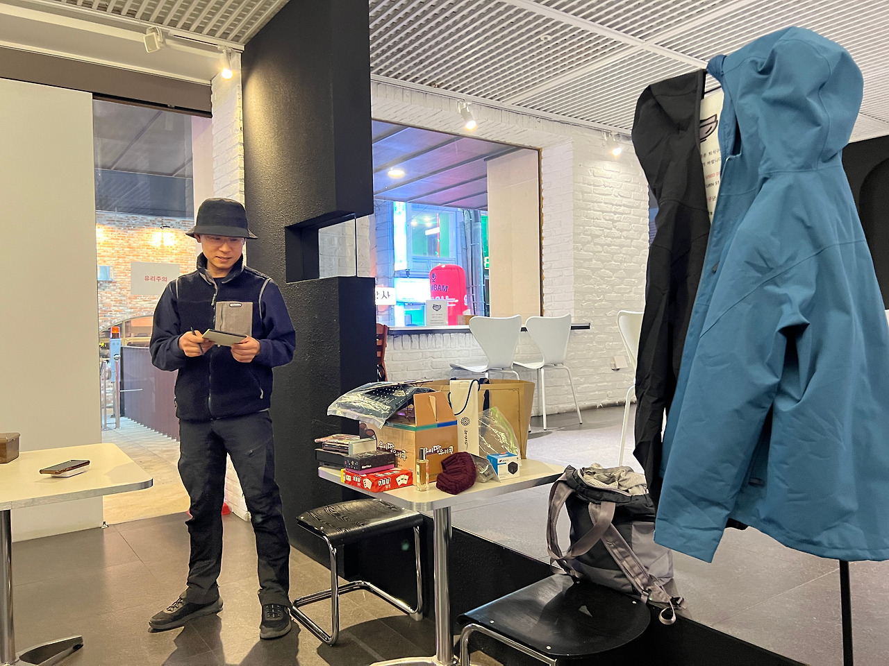 저녁식사로 홍합밥정식과 수육에 막걸리를 한 잔씩하고 숙소로 돌아와 최근 여행에서 진행 중인 경매행사를 진행했다.