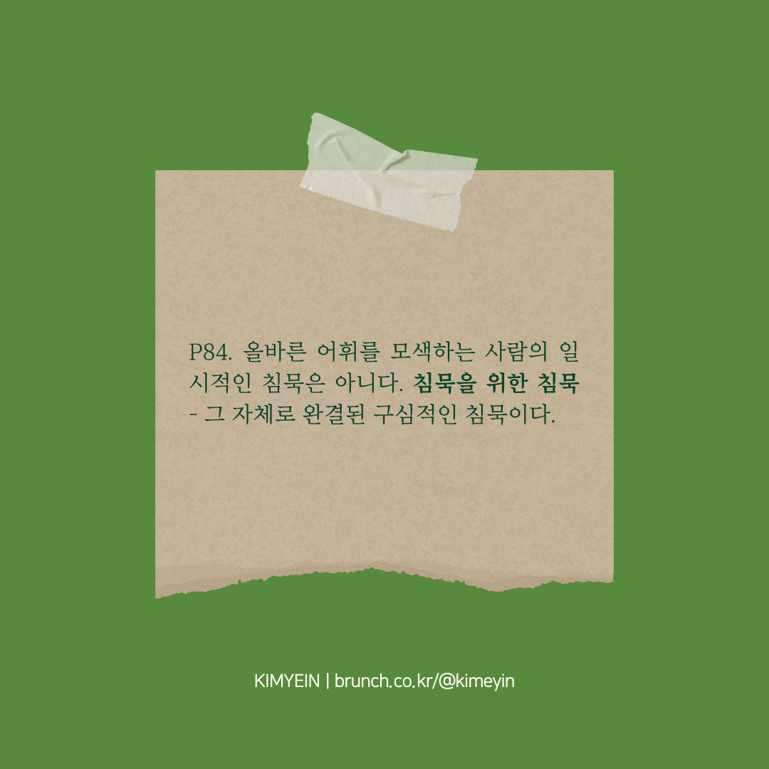 P85. 나의 침묵은 올바른 어휘를 찾아내지 못한 사람의 침묵이다.