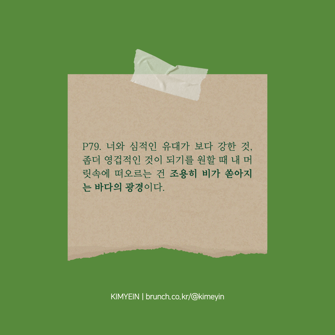 P76. 내게 침묵은 조금도 고통스럽지 않다. 오히려 그 침묵을 환영했는지도 모른다. 침묵은 기억을 일깨워주므로. 너도 침묵에 딱히 신경 쓰지 않는다.