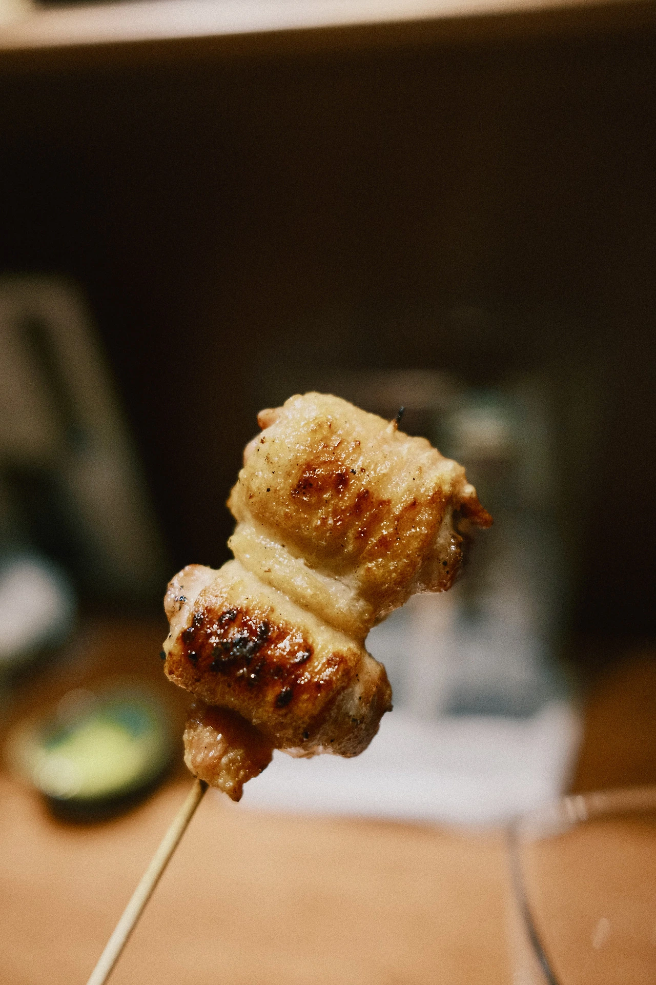 토종닭을 사용하신다고 한다. 6종 코스(5종+야채 1)를 주문했고, 염통부터 시작했다. 이후로 순서는 잘 기억나지 않는데, 전반적으로 다 맛이 좋았다. 토종닭이라 그런가 씹는맛이 많이 두드러졌다. 코스에 포함된 꼬치 중에는 고관절이 가장 맛있어서 하나를 더 주문했다. 이후는 아킬레스건에 근막 등을 주문했다.