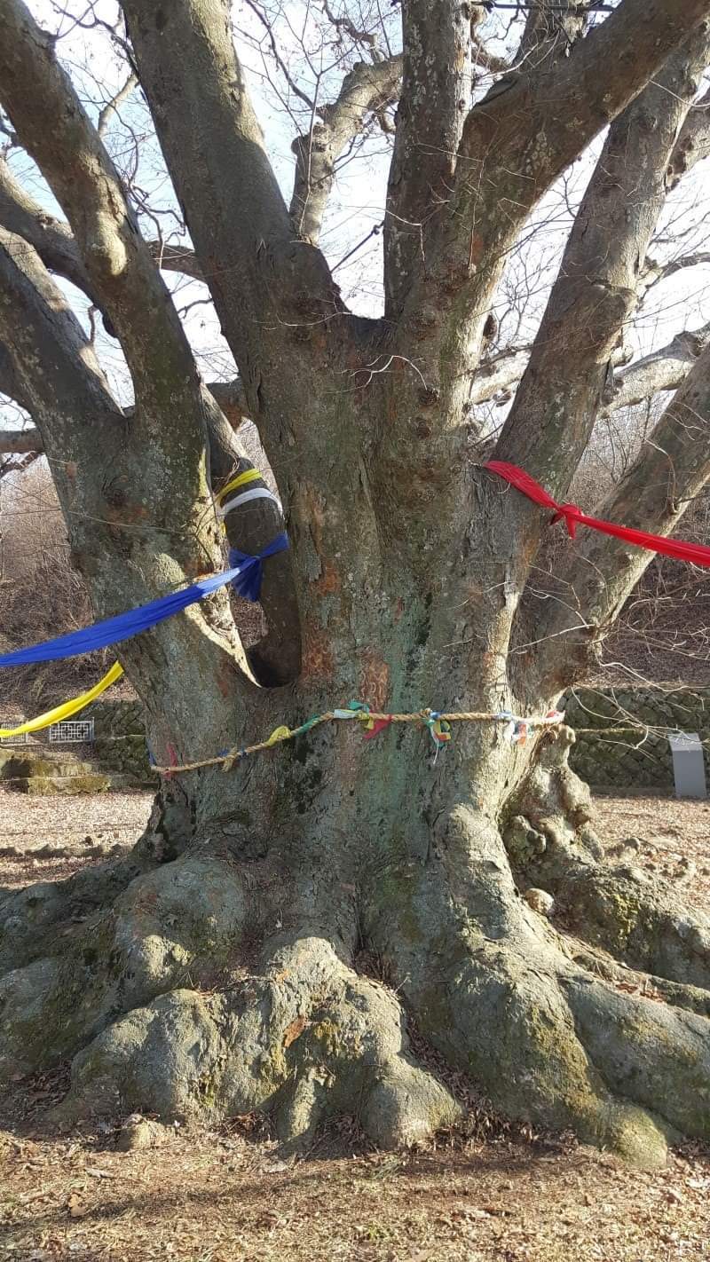고을 주당산나무에는 짚으로 꼬아 만든 두줄의 새끼를 둘렀다
