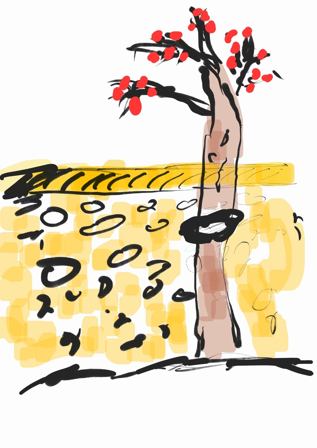 지리산 작은 고을 동헌 담장 밖에는 백성들의 감시를 받고 사는 감나무가 한그루 있었다