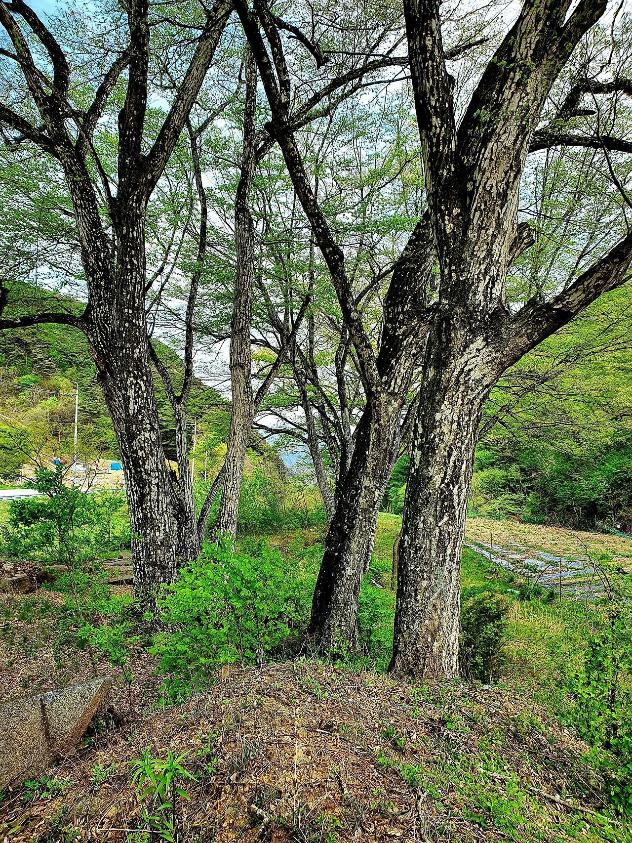 다락논 중간에서 그늘이 되어 샛참장소가 되었고 논에서 일하던 어머니가 아이를 허리와 나무 몸뚱이에 묶어 놓은 아이 보는 나무이기도 했다