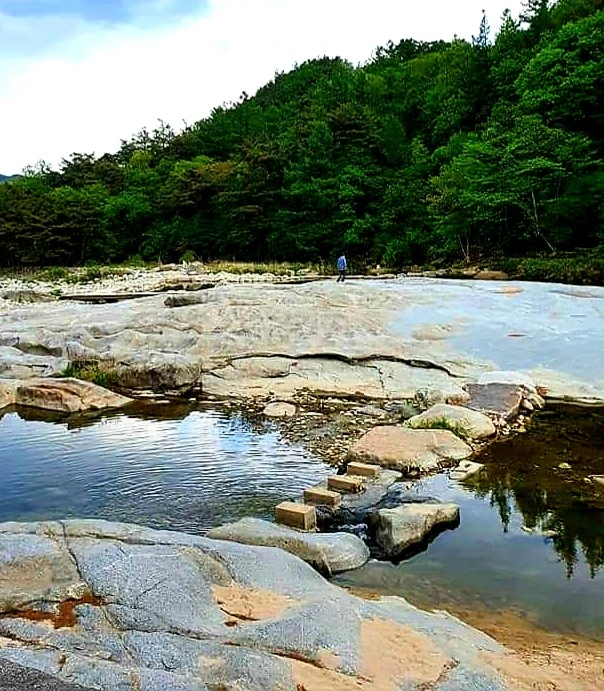 한 시간 남짓 말을 타고 가자 큰 계곡이 나타났다 말을 두고 다시 한참을 걷자 사람들이 냇가 옆에서 정자를 짓고 있었다