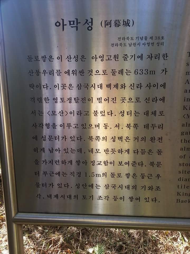 1500여 년 전 백제와 신라의 접경에 쌓은 둘레 633m의 이성을 사람들은 아막성이라고 부른다