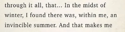 "겨울의 한가운데서, 나는 마침내 무적의 여름이 내 안에 있음을 알았다."