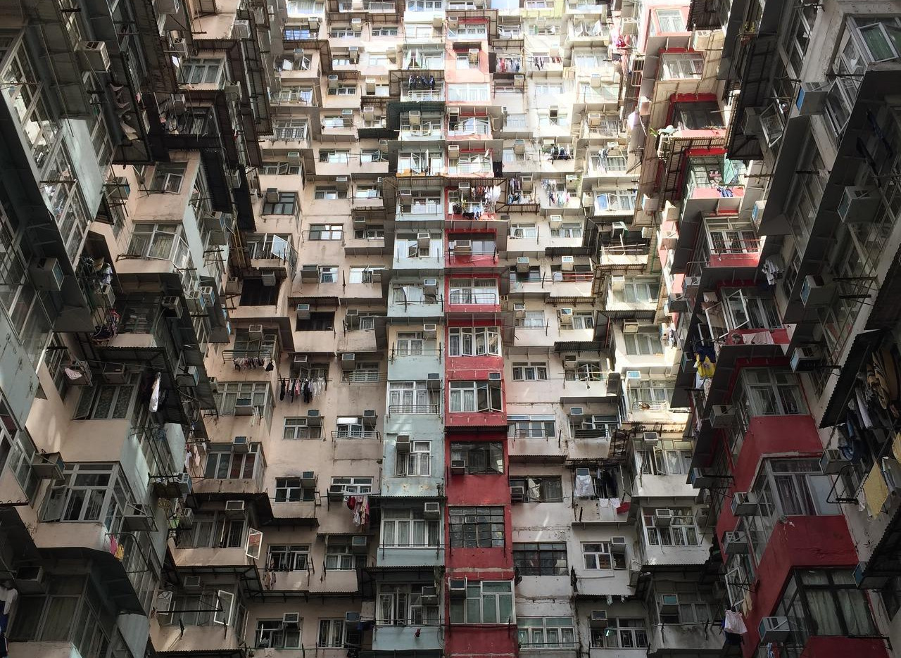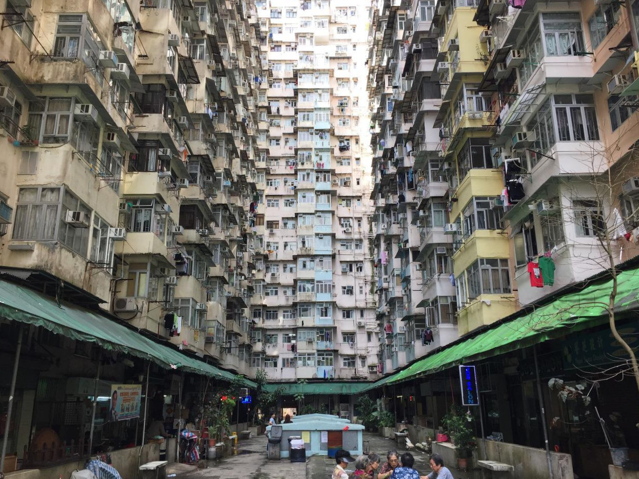 알파벳 E를 눕혀 놓은 모양으로 생긴 거대한 건물에는 헤아리기 어려울 만큼 많은 세대가 살고 있다. 각 세대가 점유하는 공간은 매우 좁지만 각 세대는 모두 외기에 접하는 면을 갖고 있다. 그 면이 건물의 입면을 다채롭게 만든다. 그리 크지 않은 창문의 열림과 닫힘, 에어컨 실외기와 널려 있는 빨래가 리드미컬하게 배열되어 아름답다. 창문 너머로 보이는 집 안에는 각각의 우주가 담겨 있다. 빌딩 1층은 생필품 및 식료품 상점, 미용실 등이 입점해 있고 중정은 공용공간으로 적극적으로 활용되고 있는 듯하다. 내가 방문했을 때 중정에서 아주머니 여섯 분이 모여서 마작을 했다.