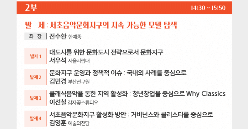 한결같은 나의 관심분야는 예술과 도시·사회의 상호작용이다. 이 거대한 주제를 연구로 갈무리하기 위해서는 여러 가지 현상에 대한 구체적인 연구가 더해져야 한다. 그래서 최근에는 문화기반시설이 지역(문화산업)에 어떤 영향을 미치는지를 연구했다. 그리고 한국예술경영학회·서초문화재단, 한국문화경제학회, 한국지역사회학회·서울대학교 사회발전연구소의 포럼 및 학술대회에서 진행 중인 연구를 발표하고 연구를 발전시킬 소중한 의견들을 들었다. 또한 이 과정에서 홍익대학교 공연예술대학원 학생들에게 특강으로 연구를 소개할 수 있는 기회를 얻기도 했다.