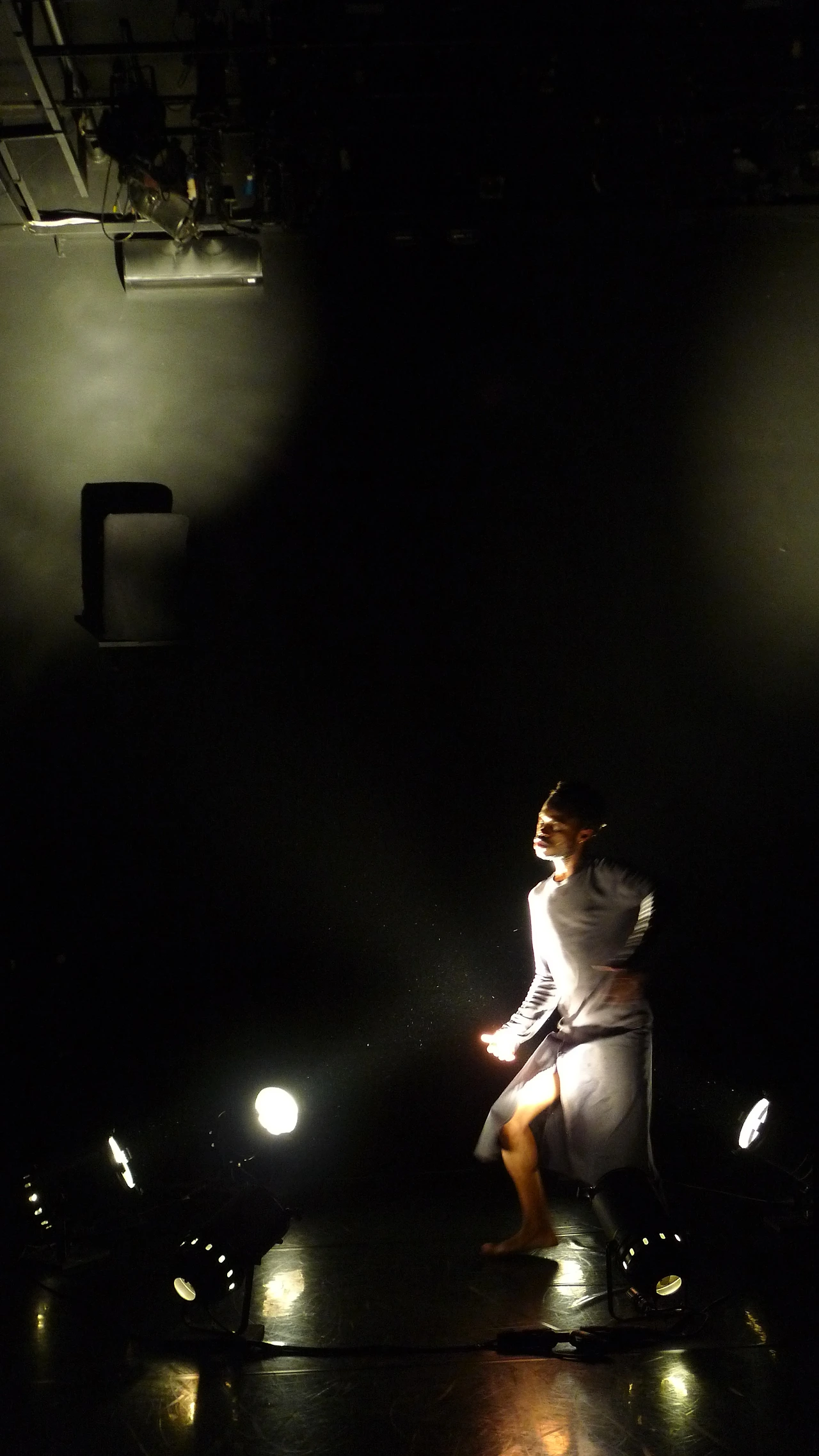 이 공연은 한 사람의 성장을 고스란히 담고 있다. 무대에서 그는 몸으로 말하는 이야기꾼(Story teller)이다. 무대는 선형조명이 설치된 우측, 원형조명이 설치된 좌측, 그리고 약간의 소품이 준비된 무대 전면(前面)으로 구성되어 있다. 그는 무대 전면에서 무용 교본과 그의 고향(Congo) 사진을 노트북으로 보여준다. 이어서 무대 우측에서 현대적인 몸짓을, 좌측에서 원형조명을 따라 돌며 토속적인 몸짓을 한다. 몇 차례 반복되는 이 행위는 경건하다. 그리고 무대 중앙으로 이동하여 현대적인 몸짓과 토속적인 몸짓을 함께하다가 마침내 두 몸짓은 뒤섞여 구분이 어려운 하나의 무용이 된다.