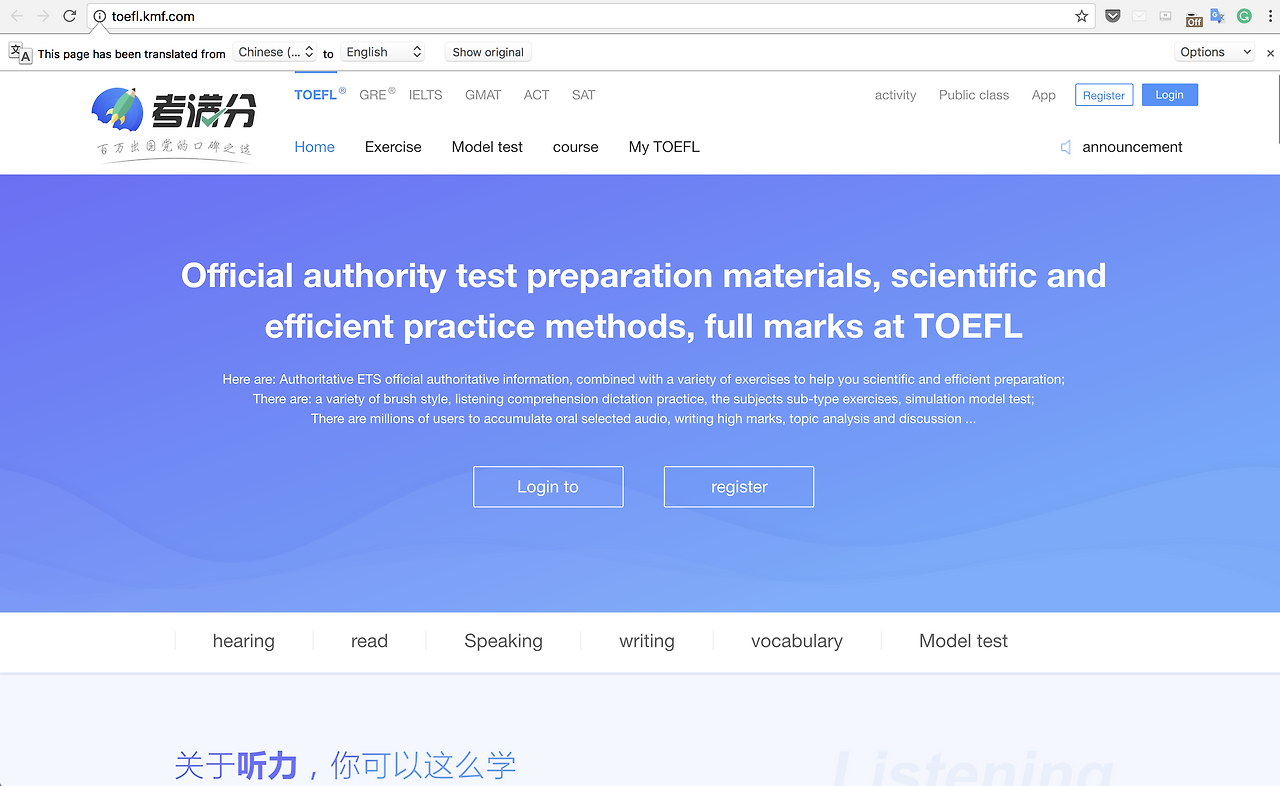 중국 사이트라 크롬으로 열고, 영어로 번역하여 사용하길 권장한다. 이 사이트는 사실 GRE 공부할 때부터 알았다. 그때는 학원에서 준 자료만으로도 충분해서 종종 답을 찾아야 할 때만 활용했었지만, TOEFL 할 때는 학원을 한 달만 다녔어서 공부할 게 다 떨어졌고, 결국 점수를 올리는 내내 이 사이트를 가장 자주 찾게 되었다.
