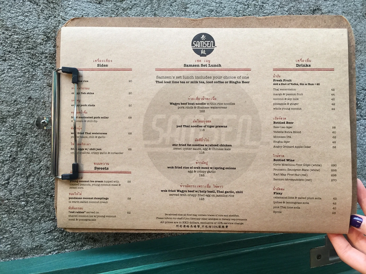 Samsen은 Wan Chai에 있는 태국 음식점이다. 여기도 역시 미슐랭 가이드에 선정된 곳이고 현지의 맛, 분위기 등 을 잘 표현했다. 특히 소고기가 들어간 누들은 나도 처음 먹어본 음식이었는데 진한 육수의 맛이 생소하면서도 중독성 있어서 끝까지 먹게 됐다. 이 식당은 길가에 완전히 오픈되어있어서 문이 따로 있긴 하지만, 테라스 쪽에 자리가 있으면 그냥 뚫린 곳으로 들어가 앉을 수 있고, 홍콩의 좋은 날씨를 그대로 만끽하며 먹을 수 있다. 호스트 언니까지 세 명이 먹었는데, 맥주 두 병, 밀크티 한 잔, 음식 3개 시켜서 500 HKD 정도.
