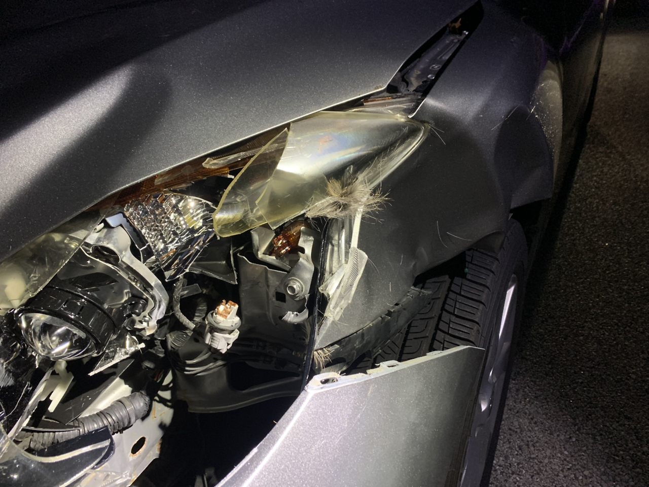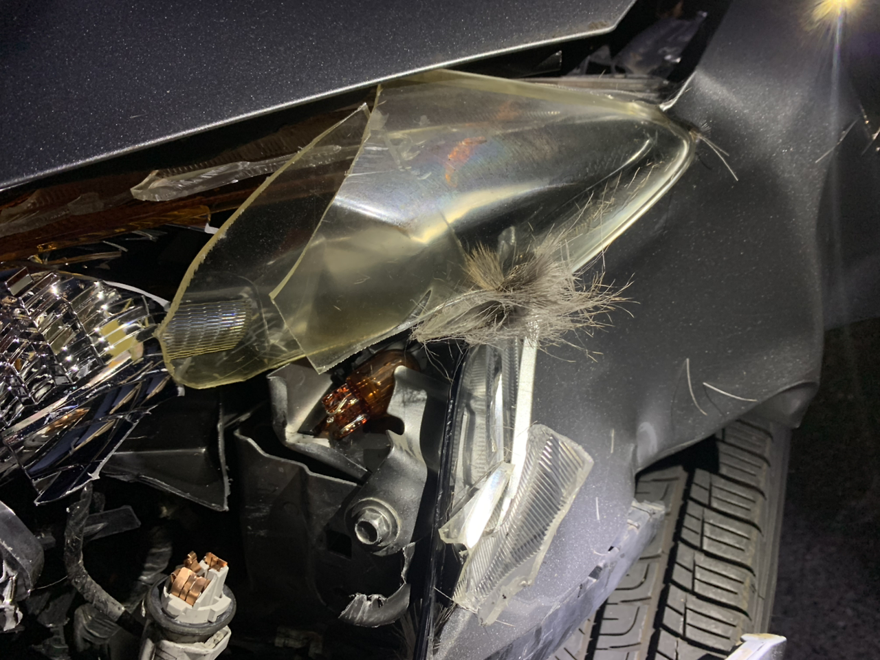 너무 놀라서 정신없는 나에게 경찰 아저씨는 정말 친절하게 이것저것 알려주셨다. (1) 보험사에 클레임을 넣으려면 ‘사슴에게 치였다는 증거’가 필요하니까 헤드라이트에 박힌 사슴 털 사진을 찍어둬야 한다는 것이다. 너무 어두운 새벽이라, 경찰 아저씨는 경찰차의 방향까지 틀어가면서 내 차에 헤드라이트를 비춰주셨다. 덕분에 대낮같이 밝은 사진을 찍을 수 있었다. (2) 혹시 보험사에서 개수작을 부린다면, 경찰에 신고한 기록을 알려주라고 하시며 경찰 아저씨 이름과, 리포트 넘버를 알려주셨다. (3) 집으로 되돌아가야 하는데 운전을 해도 될지 모르겠다고 하니, 경찰 아저씨가 뒤에서 같이 가면서 봐주겠다고 하셨고, 정말 집까지 천천히 같이 따라오셨다. (막연히 경찰은 무조건 피해야지, 무서워!라고 생각했던 나였는데 이번에 정말 감동의 감동을 주시는 좋은 아저씨를 만났다.)