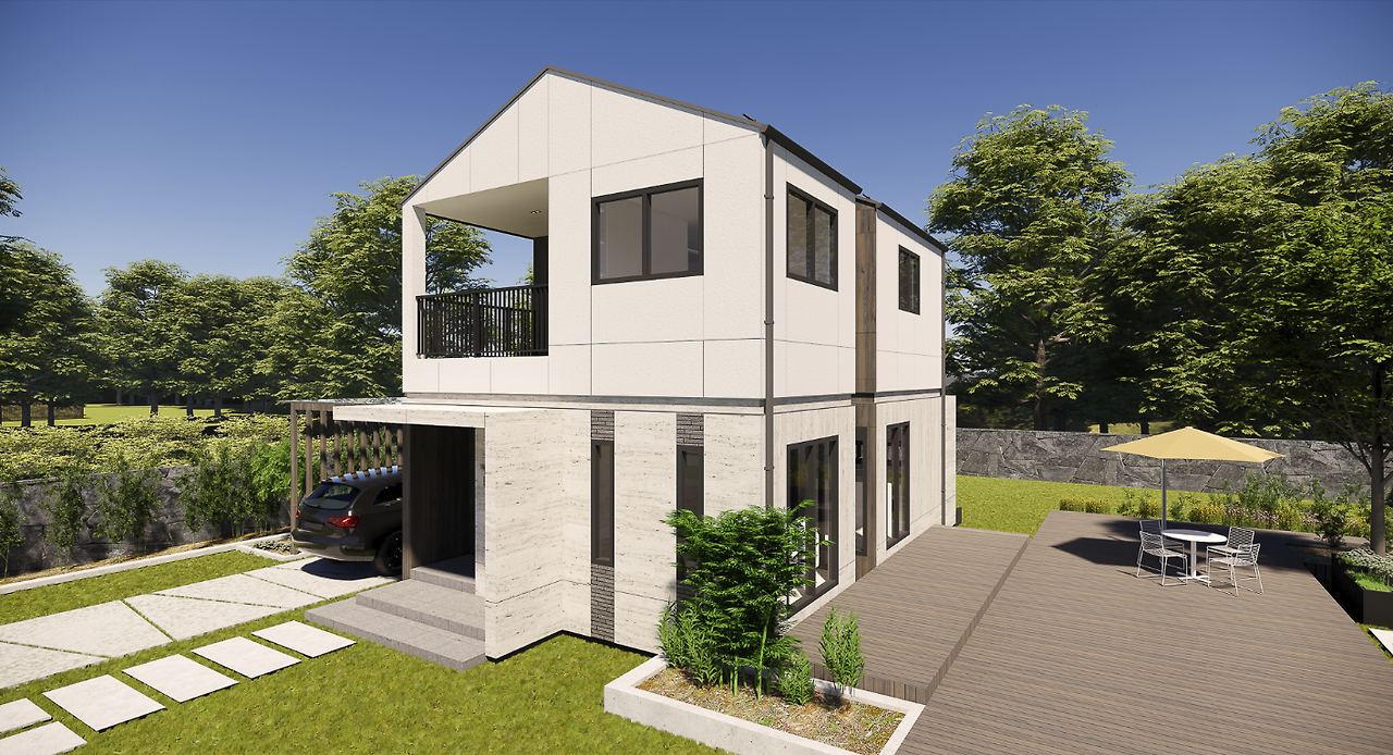 GS건설이 인수한 폴란드 ‘단우드’ 사의 패널(벽체)이 구조체로 사용되는 등 유럽에서 검증된 프리패브 공법과 국내 프리미엄 아파트 브랜드 ‘자이’의 디자인이 결합된 한국형 고급 단독주택입니다. 이번 콘셉트하우스는 전문주택업체의 단독주택단지를 조성하는 사업을 위한 B2B 모델로 일반 개인 단독주택을 위한 B2C 모델은 추후 공개할 예정으로 알려졌습니다.