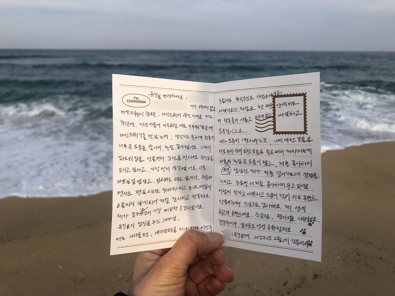 그리고 파도의 집을 나서기 전, 담당자님은 슬쩍 내 손에 편지를 쥐어주셨다.