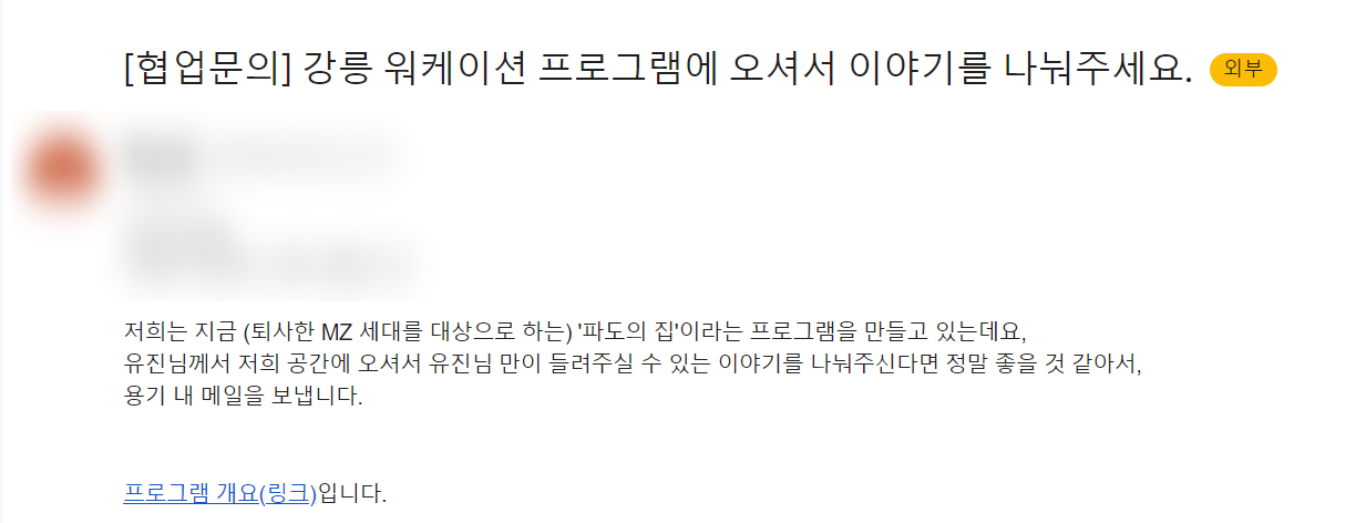 어느 날, 강릉에 있는 ‘파도의 집’에서 연락이 왔다. '파도의 집'은 퇴사한 MZ세대를 대상으로 하는 2박 3일 힐링 프로그램인데, 이들의 마음건강을 위한 강의를 해달라는 요청이었다.