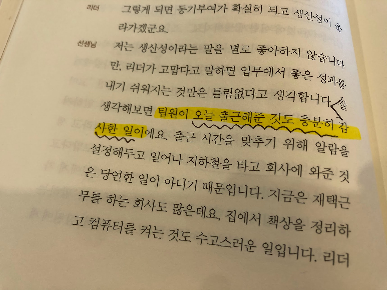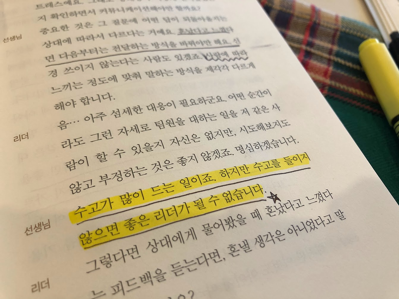 이 책을 읽는 내내, 우리 팀원들을 이해하게 된 부분도, 또 리더로서 스스로 반성하거나 용기를 얻은 부분이 참 많았다.