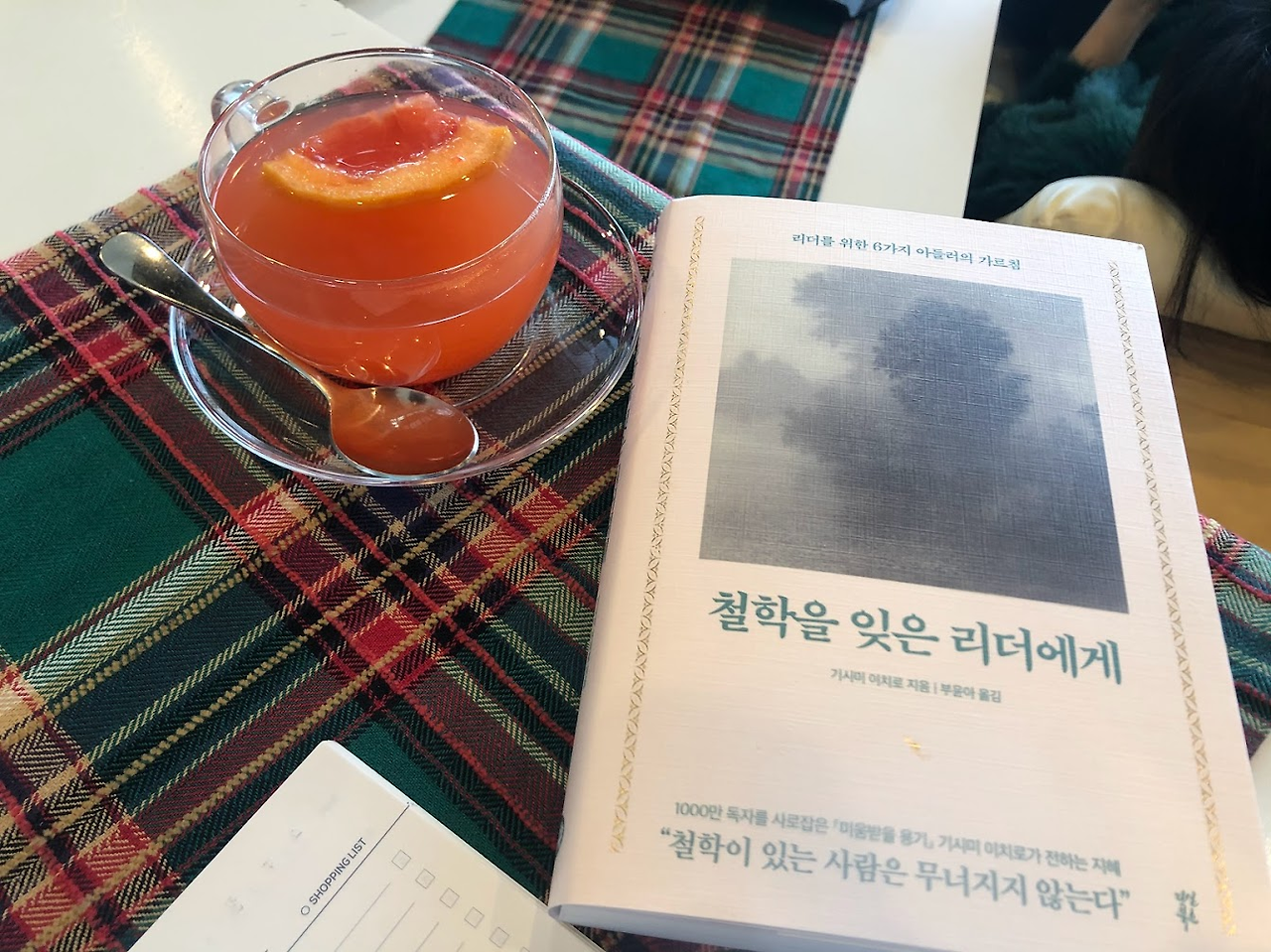 첫 번째로 읽은 책은 강문해변이 보이는 카페에서 읽은 ‘철학을 잊은 리더에게’라는 책이다. 이 책은 <미움받을 용기>의 리더십 버전이라고 보면 되는데, 아들러의 심리학을 리더에게 접목해서 다양한 지혜를 전해준다.