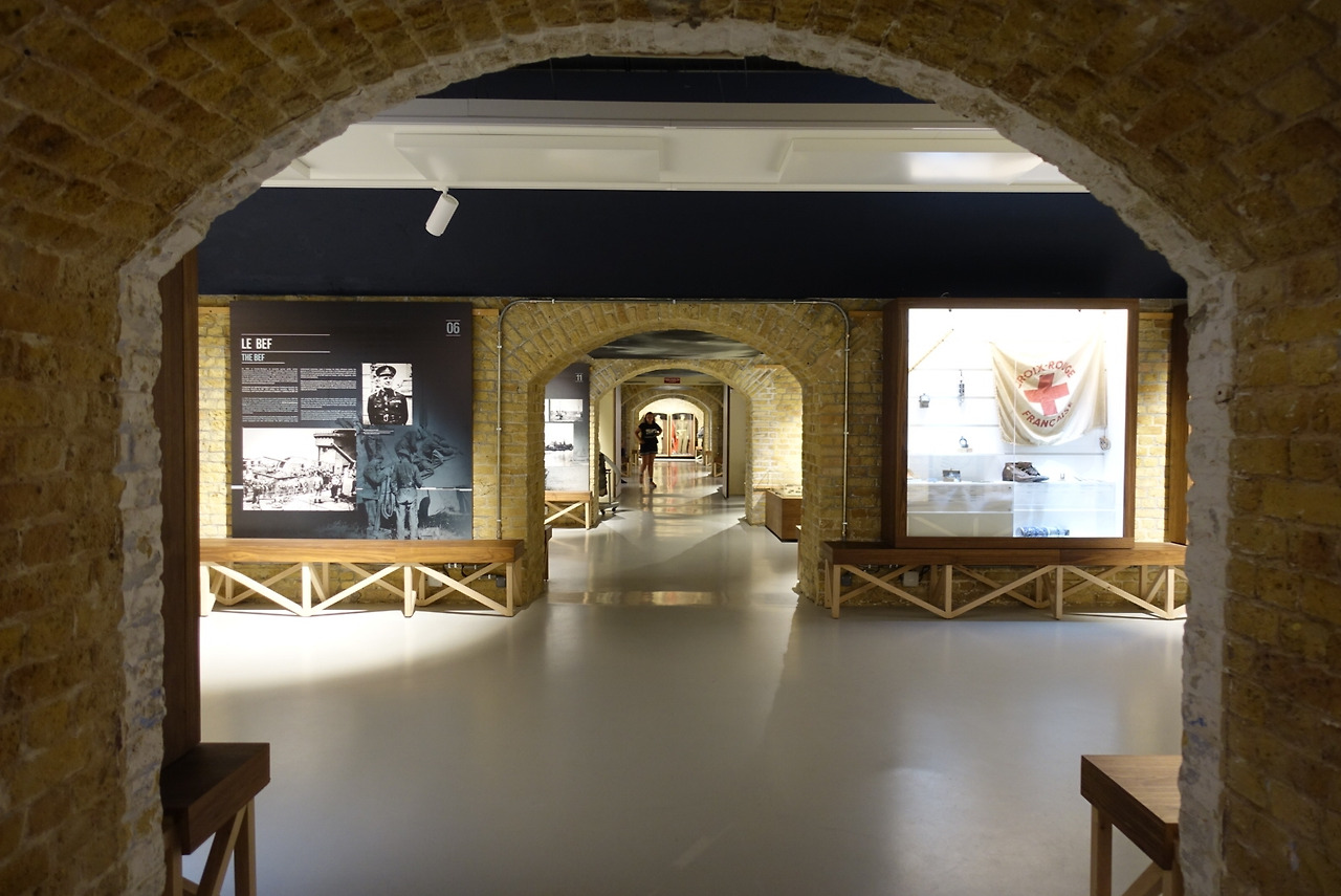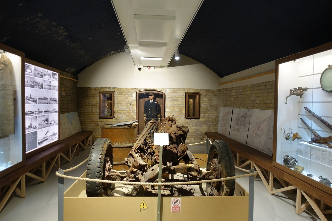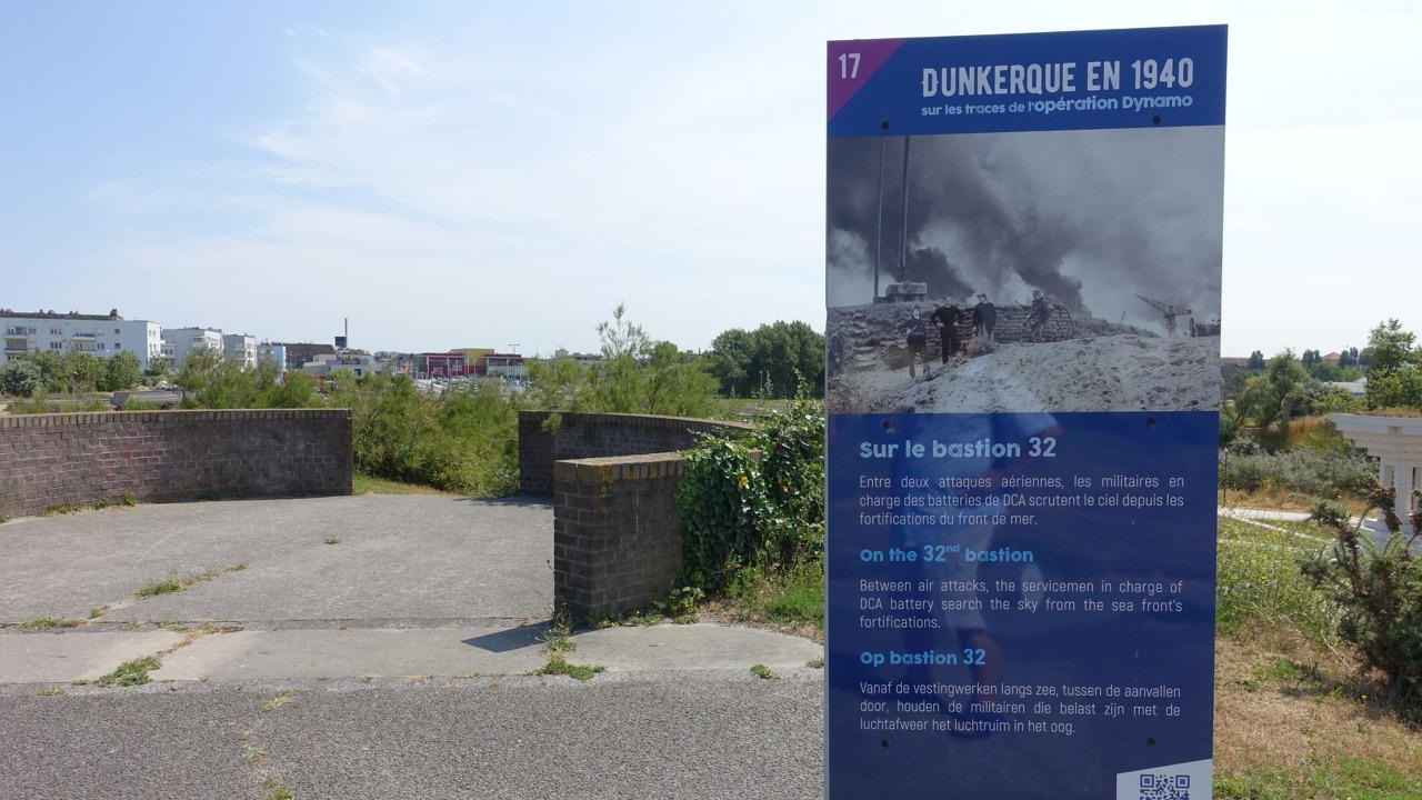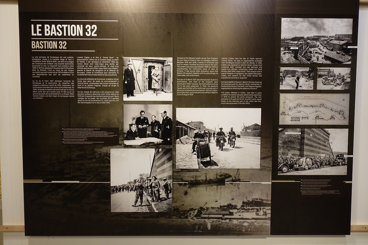 전쟁의 흔적은 많이 남아있지 않다. 검색으로 ‘됭케르크 1940 기념관 (the Museum Dunkirk in 1940)’을 찾아냈다. 해안의 요새 유적을 활용한 기념관 겸 박물관이었다. 한적한 곳이라 넓은 공짜 주차장이 있었는데 차가 몇 대 없었다. 기념관은 원래 '32호 요새(Bastion 32)'다. 기다란 벙커처럼 생긴 공간이다. 1874년부터 방어용 요새였고 프랑스와 연합군이 2차 대전 초기와 철수 작전 때도 썼다고 한다. 그다음에는 독일군이 썼을 것이다. 전쟁을 지나면서 요새는 대부분 파괴되었고 이곳만 남아 복원했다고 한다. 1940년 여름의 그 철수 작전은 ‘다이나모 작전(Operation Dynamo)’이라고 불렀다. 작전 전후의 전쟁 상황, 주변 마을의 당시 모습까지 사진과 함께 자세히 설명해 놓았다. 백사장에 박혀 있었거나 물 밑에서 찾아낸 비행기와 선박 잔해, 무기, 유니폼, 소지품들을 칸마다 전시하고 있다. 생각보다 내부가 가로로 매우 길어서 끝까지 왕복하면서 양쪽을 다 보려면 시간이 오래 걸린다.