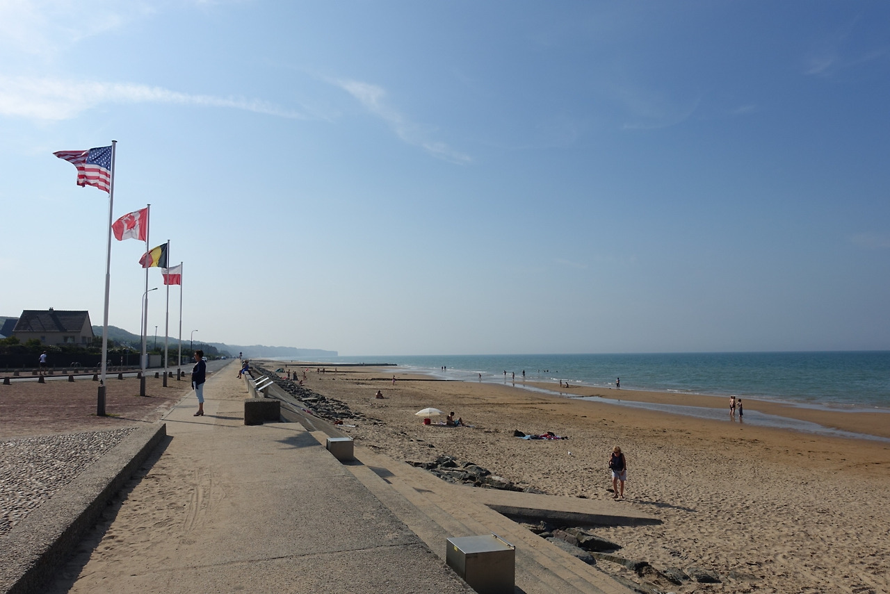 캉 전쟁기념관에서 시간을 지체해서 실제 해변을 둘러볼 시간이 별로 없었다. 이름부터 인상이 강했던 오마하 비치만 가보기로 하고 길을 서둘렀다. 오마하 비치나 유타 비치 등은 상륙작전 이후에 미국 이름으로 바꾸었다고 한다. 캉에서 30분 정도 걸려 도착한 오마하 비치는 보자마자 감탄이 절로 나왔다. 한가운데 서 있는 기념비와 추모 조형물만 아니면 너무나 훌륭한 해수욕장이었기 때문이다. 사방으로 끝이 보이지 않을 정도로 넓게 펼쳐진 백사장과 완만하게 이어지는 바다는 '이래도 안 들어올 거냐'라고 하는 것 같았다. 실제로 해수욕장이었으므로 많은 사람들이 모래사장과 바다를 즐기고 있었다. 방금 전쟁기념관을 보고 온지라 밝은 표정을 짓기조차 미안했지만, 그렇다고 항상 추모만 할 수는 없다. 이런 날씨에 이런 바다는 즐기는 게 맞을 것이다. 나도 슬쩍 신발을 벗고 찰랑찰랑한 바닷물에 발을 담갔다. 이 아름다운 해변에서 라이언 일병 구하기에 나왔던 것처럼 젊은 군인들이 죽고 다치면서 물속에서부터 모래사장 끝까지 쓰러져 있었다고 생각하니 할 말이 없었다. 넓고 평평하게 트인 전망이라 상륙할 때의 위험은 알고 있었을 텐데, 그럼에도 불구하고 바다로 뛰어내린 군인들은 어떤 생각이었을까? 전날 미리 독일군 진지를 폭격해서 약화시켜놓으려다 실패해서 독일군 저항도 매우 거셌다고 한다. 상륙하던 군인들은 그걸 몰랐을 수도 있다.