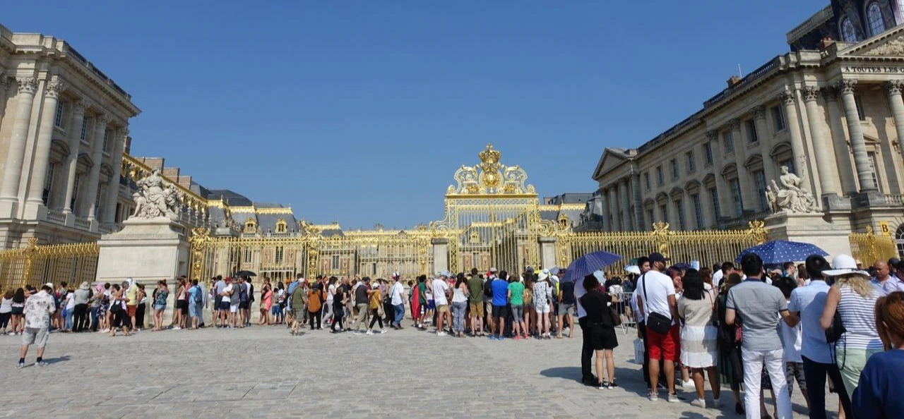 아침 10시경에 주차장에 차를 댔다. 베르사유 궁전으로 행선지를 정하자마자 제일 먼저 한 것이 온라인 본궁 입장 예약이었다. 사전에 시간까지 정해서 예약하는 것이 좋다. 아니면 궁전 앞에서 기약 없이 줄을 서야 한다. 11시에 본궁 내부에 입장하는 것으로 예약을 해서 '패스포트'를 인터넷으로 사 두었다. 꽤 날짜 여유를 두고 샀기에 가능했던 입장 시간이다. 임박해서 사려면 맞는 시간이 없어서 결국 긴 줄을 서야 하는 모양이었다. 벌써 화려한 금박 대문 앞으로 줄이 늘어섰다. 땡볕 아래 지그재그로 끝이 없었다. 미리 예매한 딸 덕을 보시는 거라고 부모님께 엄청 생색을 내며 여유롭게 근처 정원을 구경하다가 입장했다. '패스포트'는 본궁과 두 트리아농은 물론이고 모든 정원과 분수쇼, 마차 박물관까지 포함하는 20유로짜리 종합권이다. 궁전 표만 사면 중앙 정원을 들어갈 수 없기 때문에 결국 이걸 사게 된다. 게다가 여름 시즌에는 대부분 날짜에 음악분수를 튼다는 이유로 7유로나 더 붙어서 일인당 27유로를 지불해야 한다. 대충대충 본다 해도 하루 안에 다 보는 건 거의 불가능하다. 2일권이 30유로로 겨우 3유로 차이다. 하루만 보고 가는 여행자들에게 너무 심하게 장사를 한다는 생각이 들었지만 어쩌겠는가. 우리 가족도 각각 패스포트를 샀고, 그래서 최대한 다 보겠다고 종일토록 열심히 돌아다니게 되었다.
