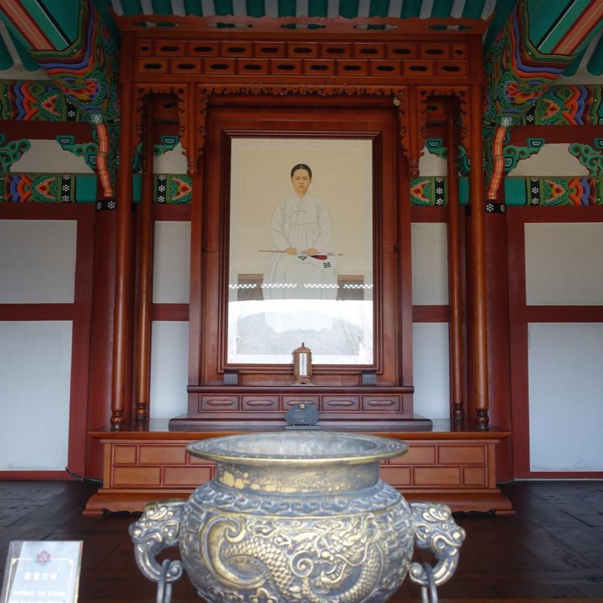 산 너머 지경리라는 마을에 유관순 생가도 있다. 생가 자체는 당연하게도 전형적인 초가집을 재현해 놓은 것이다. 마네킹으로 만세운동 준비 모습을 방 안에 꾸며 놓았다. 인상적인 것은 바로 옆의 교회였다. 목사 사택도 아닌데 동네 교회와 유관순 생가가 딱 붙어있다. 지금 교회는 80년대에 새로 지은 건물이지만 당시에도 유관순 집은 교회 옆집이었다. 그러고 보면 그 시절에 이 시골에서 서울의 이화학당까지 딸들을 유학 보낸 집안이다. 기독교가 일찍 뿌리내린 마을이고 유 씨 집안은 교회를 설립하고 운영하다시피 한 독실한 집이었다. 교회 지하에도 전시실이 있었다. 3.1 운동에 참가했다가 이화학당이 문을 닫아서 집으로 내려온 유관순은 여기서 가족, 친척과 마을 사람들과 함께 만세운동을 준비했다. 동네에서 아우내 장터까지는 거리가 꽤 되는데 설마 그때 차가 있었을 것 같지는 않다. 4월 1일 장날에 태극기 만든 걸 다 들고 온 가족과 마을 사람들이 함께 걸어갔을까? 그 날 부모님을 포함하여 결과적으로 19명 사망, 130명 부상이라는 기록을 남기고 가족과 마을이 풍비박산 났다. 19세의 어린 여학생이었던 유관순이 한국 독립운동의 상징이 된 데에는 이런 환경의 영향과 주위 사람들이 있었다.