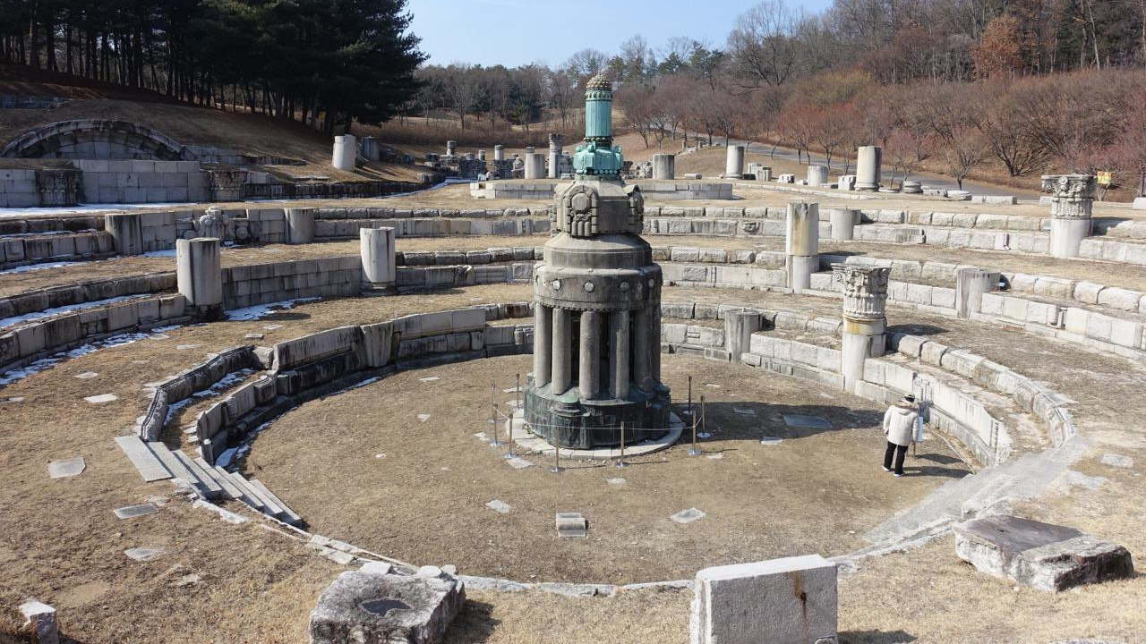 나오면서 공원 남쪽에 있는 '조선총독부 철거 부재 전시 공원'에 들렀다. 1995년에 총독부 건물 철거 장면을 TV로 봤다. 더 어릴 때 그 건물이 국립박물관이었을 때는 무슨 궁전 같아서 좋아했던 기억도 있다. 총독부 건물도 당연히 문화재적 가치가 있었고 엄청 공들인 건물이었으니 아깝기도 하다. 그렇지만 지금도 그 자리에 경복궁 대신 이 건물이 있었다면 그것도 갑갑한 일이었을 거다. 청동과 유리조각이 남아있는 돔 꼭대기 부분을 중심으로 철거된 조각들을 가져다 놓았다. 사진만 잘 찍으면 여기가 이탈리아나 그리스라고 해도 믿을 것 같다. 자세히 보면 다르게 생겼지만 코린트식 비스름한 기둥머리나 대리석 박공 등 영락없이 그리스나 로마 신전 잔해다. 고대 유물 감상하듯 구경하고 나오다가 정문 앞 롯데리아에서 점심 요기를 하고 있자니 뭔가 안 어울리는 느낌이었다. 롯데리아에 갑자기 사람이 많다 싶었는데 점심 나절을 지나면서 부쩍 입장객이 늘어나고 있었다. 오전에 들르기를 잘한 거였다.