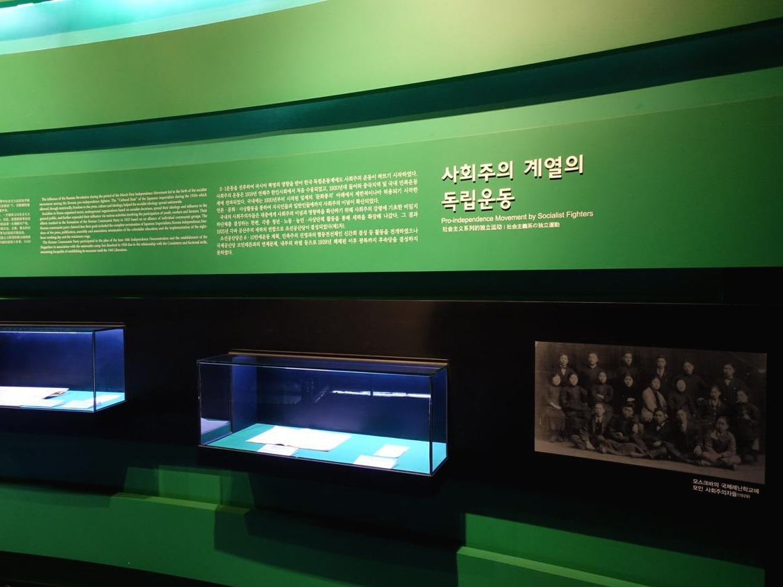 관람하면서 5관과 6관 전시가 궁금했었다. 워낙 독립운동의 면면이 다양했고 지금도 성향에 따라 평가가 갈리기 때문이다. 독립투사들 개인의 이야기는 거의 없고 단체별 활동, 전투, 사건 위주로 간략하게 설명하느라 공들인 모습이다. 1920년대 이후로 피할 수 없었던 사상적인 분화와 대립은 최소한만 언급한다. 물론 민족주의 계열과 임시정부 활동이 대부분을 차지하지만 만주와 연해주의 다양한 그룹과 단체도 언급은 되어 있다. 아주 작게 '사회주의 계열의 독립운동'이라는 코너도 있긴 있어서 조금 놀랐다. 물론 사람 이름이나 구체적인 활동은 하나도 나오지 않는다. 붙어 있는 사진 한 장은 국내파 공산주의자들의 젊은 유학시절 단체사진이라 누가 누군지 알 수 없다. 하지만 그 사진에는 박헌영도 있다. 사실 독립운동 시절은 분단과 냉전 이전이고 사회주의 계열의 활동도 큰 부분이다. 언젠가 그에 대한 설명이 조화롭게 추가될 수 있을까? 지금은 상상하기 어렵다. 어쩌면 독립기념관이 접근성 떨어지는 외진 곳에 있는 덕분에 전시물에 대한 괜한 논쟁을 덜 겪는지도 모르겠다.