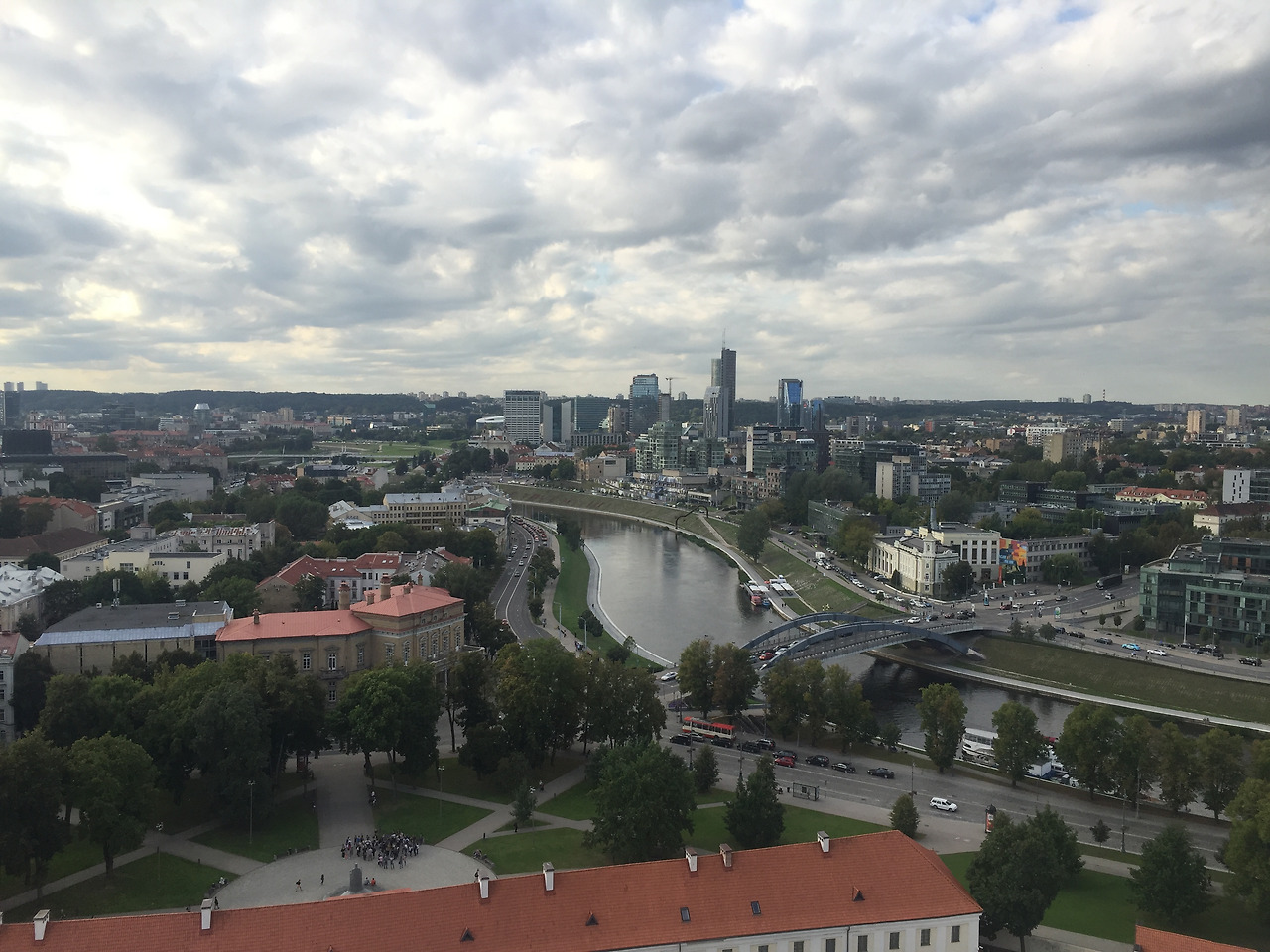 중세 미로 같은 구시가지가 자리한 곳은 네리스 강이 동서로 굽어 흐르는 강변의 남쪽이다. 유리로 된 고층빌딩과 큰 쇼핑몰들이 있는 현대식 신시가지는 강 건너 북쪽에 펼쳐진다. 강의 남쪽, 구시가 골목 끝에 있는 대성당 광장을 기점으로 서쪽으로는 고개를 돌리면 근대에 확장된 직선적인 거리가 나온다. 중세의 구시가 골목과 달리 서쪽의 근대적인 시가지는 19세기부터 20세기까지 러시아 제국 시기에 조성되어 소련 시기까지 공공기관이 집중된 지역이었다. 직선으로 쭉 뻗은 대로는 지금 이름은 게디미나스(Gediminas) 거리이다. 대성당 광장에 이순신 장군 동상처럼 서있는, 빌뉴스의 창건자 게디미나스 대공의 이름을 딴 것이다. 러시아 제국 치하에서 처음 조성될 때는 성 조지 거리였다고 한다. 찾아보니 1차 대전 이후 폴란드가 차지했을 때는 유명 시인이 이름을 따서 미츠키에비츠 거리, 독일 나치 점령 때는 히틀러 거리, 소련 치하에서는 처음에 스탈린 거리였다가 레닌 거리가 되었다고 한다. 거리 이름 하나도 참 부침이 많았다. 그 거리를 중심으로 관공서와 호텔, 상업시설이 들어찬 잘 구획된 거리와 골목들이 나온다.