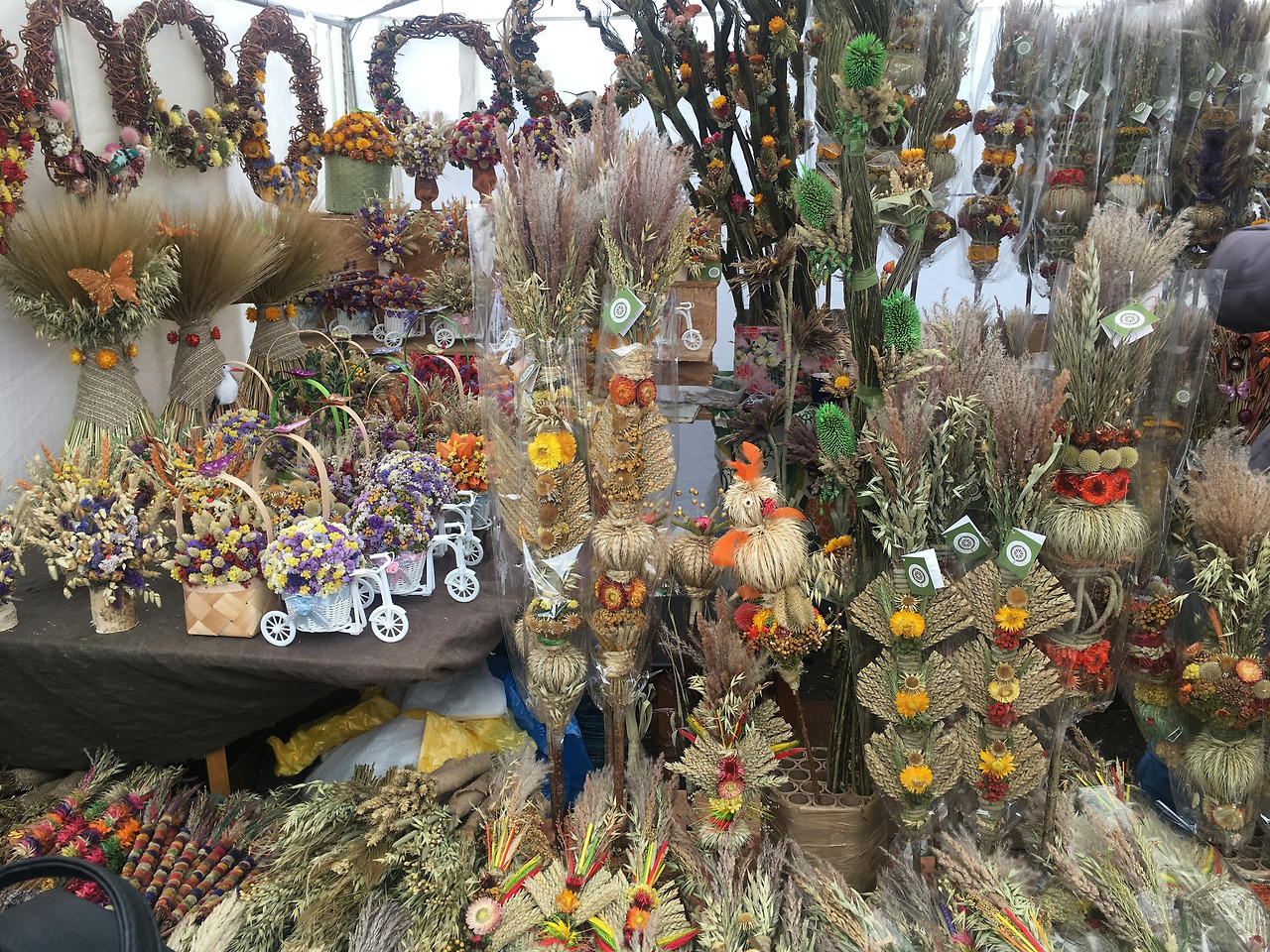 토속 이교 문화 중에 마치 우리나라 장승과 비슷한 나무기둥 조형물이 있다. 비타우타스 대공을 포함하여 중세 영웅들, 전설적 인물들이 나무기둥으로 곳곳에 서 있다. 나무로 만든 십자가는 분명히 기독교적 상징이지만 은근히 토속 형상과 닮아있다. 나무십자가는 십자가 언덕뿐만 아니라 동네 입구, 길가에도 있고, 많은 경우 예수님이 같이 조각되어 있다. 나무로 조각한 예수님은 서유럽의 부드러운 곡선보다는 나무의 결을 그대로 살려 각이 졌고, 토속 느낌이 강하게 섞인 네모 형태이다. 봄맞이 장터가 서면 삐죽삐죽한 마른풀을 색색으로 칠한 조화나 말린 꽃 장식 다발을 엄청나게 많이 판다. 우리나라 복조리 같은 봄맞이 장식인가 했는데, 부활절 시즌에 성당에 가져가서 뿌려주는 성수를 묻혀 오는 용도라고 한다. 부활절, 성당, 성수는 가톨릭이 맞지만 지푸라기 꽃다발로 복을 비는 습관은 다분히 이교적이다.