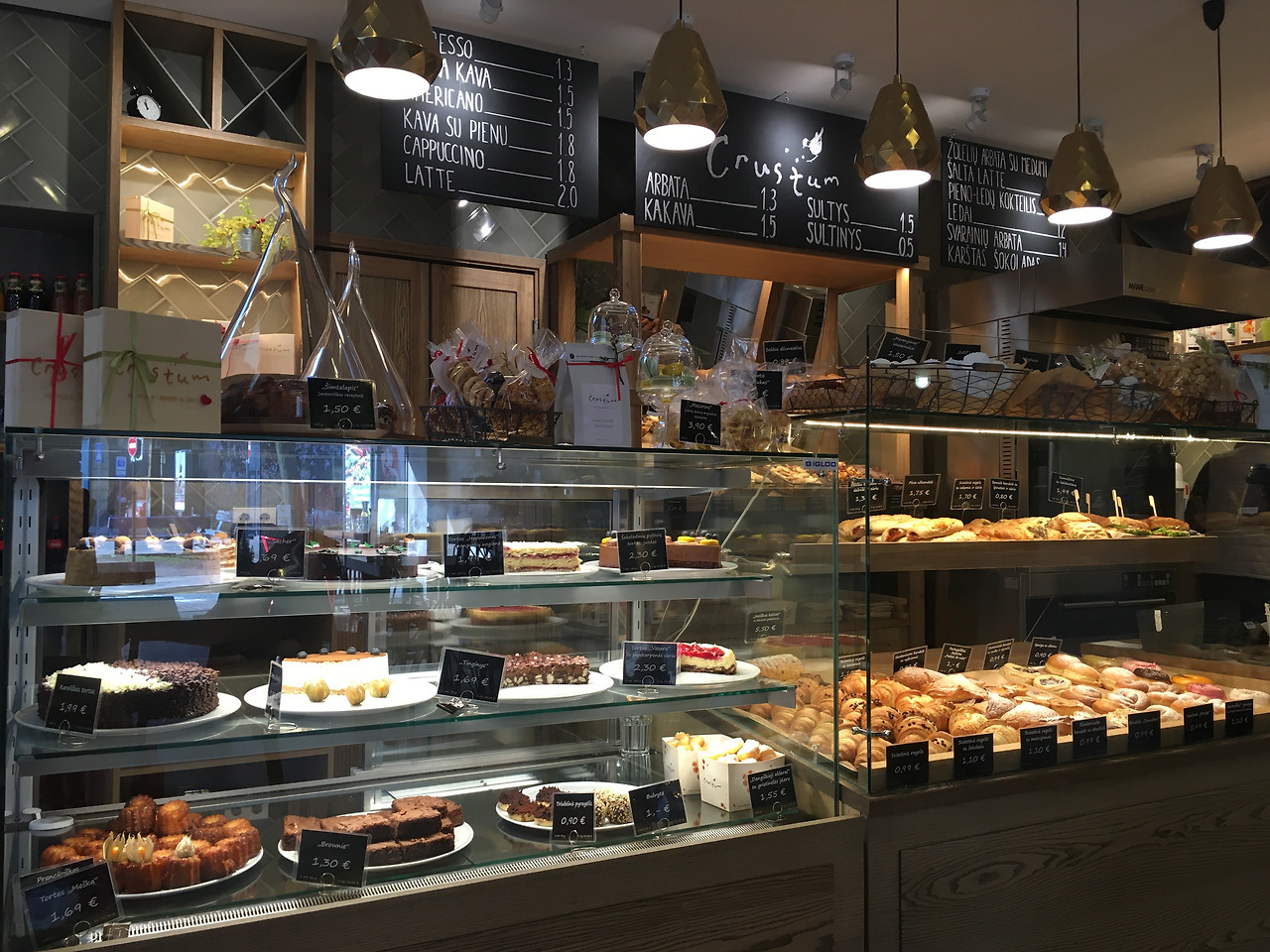 자주 가는 곳 중에 베이커리 카페 '크러스텀(Crustum)'이 있다. 빌뉴스 구시가지 중심 골목인 성채 거리(Pilies st.)의 대성당 광장 진입로에 있는 게 본점인 것 같다. 게디미나스 대로(Gediminas st.) 변 노보텔 호텔 옆의 예쁜 카페 골목에도 하나 있고, 구시청사 광장 옆으로 뻗은 번화가인 독일 거리(Vokieciu st.)에도 하나 있어서 발견한 지점만 세 군데다. 리투아니아에서 흔치 않게 비교적 한국 빵에 가까운 폭신한 빵을 판다. 깔끔한 매장과 눈치 안 보고 오래 앉아있을 수 있는 분위기가 마음에 들어서 자주 가게 되었다. 카우나스에는 아직 매장이 없는데, 빌뉴스에서는 꽤 성공했는지 손님이 끊이지 않는다. 카우나스에도 언젠가 생기길 기대하며 빌뉴스에 갈 때마다 크림이나 초콜릿이 들어간 빵을 고르곤 했다.