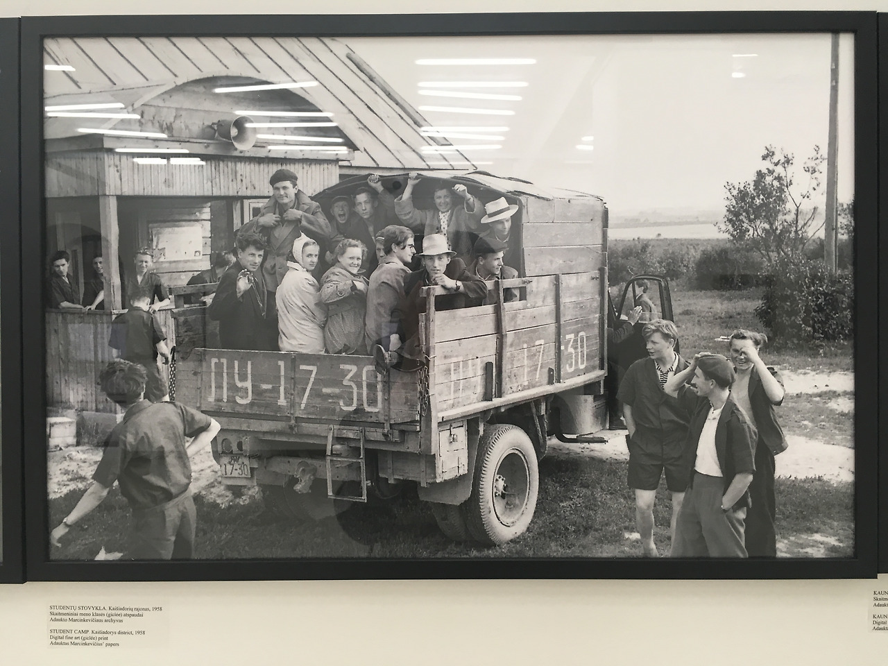 사진전에는 소련 치하였던 당시 카우나스 수력발전소 건설현장 사진이 많았다. 현장 자체보다는 그곳에서 일하던 리투아니아 젊은이들의 표정을 담았다. 노동자도 있고 구경꾼도 있고, 학생캠프 사진도 있다. 학생캠프라고 하지만 영락없는 노동력 동원 캠페인이었다. 힘든 노동이었고 정치적으로 억눌린 상황이지만 일상을 즐기려는 웃는 얼굴을 포착한 사진들이었다. 부제가 '긍정과 회의'였는데 마냥 밝지도 않고, 그렇다고 슬프지도 않고, 딱히 저항적이지도 않고, 그렇다고 순응적이지도 않은 얼굴들이다. 작가의 시각이 그러했을 것이다. 얼핏 그 시절에 사진이 잘 나오려면 자연광이 중요했던 게 아닐까, 그래서 햇살이 좋은 날 주로 찍지 않았을까 싶기도 했다. 그렇다면 간만의 햇살로 인해 다들 밝은 표정인 게 당연할 수도 있다.