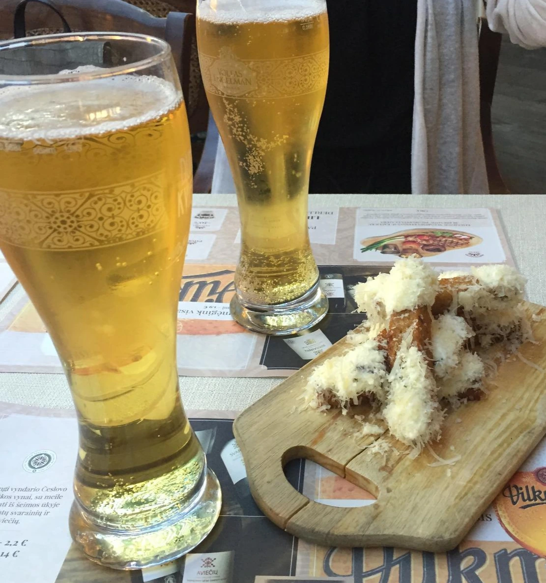 식사할 때도 맥주나 와인을 많이 마시고, 식사를 하지 않으면 한 잔 마시면서 간단한 안주거리를 시켜 긴긴 겨울밤을 보낸다. 안주의 진리는 물론 튀김이다. 감자튀김만 떠올릴지 모르나, 리투아니아에서는 기본적인 안주가 바로 빵 튀김이다. 빵 튀김이야말로 가장 사랑받는 맥주 안주다. 단단한 잡곡빵을 스틱 모양으로 잘라 감자튀김처럼 튀긴 것이다. 짭짤하게 만든 치즈 소스를 찍어먹는데, 따뜻할 때 먹으면 기름이 흥건하고 짭짤한 것이 맥주 안주로는 정말 맛있다. 칼로리를 알면 몸뿐 아니라 정신 건강까지 해칠 듯한 느끼함이 충만한 음식인데도 계속 손이 가는 무시무시한 안주다. 웬만한 음식점이나 바에서 다 파는 메뉴이고 양념이 조금씩 다르다. 중국집에서도 파는데 향신료를 넣어서 튀기기도 한다.