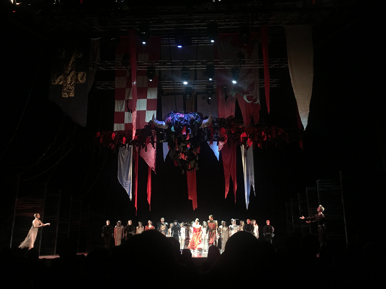 리투아니아 공연장은 외투를 맡기고 커피나 와인을 사 마실 수 있는 곳은 잘 되어 있지만 공연 정보를 자세히 알려주거나 팸플릿을 파는 코너는 없다. 모스크바 볼쇼이 극장도 비슷했는데 팸플릿이나 안내책자는 직원들이 몇 개씩 들고 드문드문 서있을 뿐, 대부분 관객들은 구입하지 않는다. 굳이 사고 싶은 사람만 그 직원에게 가서 구입해야 한다. 체육관 공연이어서 그랬는지 안내책자 파는 직원을 찾지 못하고 착석하는 바람에 스마트폰으로 열심히 공연 정보를 찾으며 시작을 기다렸다. 비타우타스 대공 이름을 쓰는 발레이니 혹 리투아니아의 작곡가와 안무가가 애국심 충만하게 100주년 기념으로 만들었나 생각했다. 하지만 그랬다면 훨씬 대대적인 홍보와 성원이 있었을 것 같은데 너무 조용했다. 검색에 나오는 대부분의 결과는 영어가 아니라 러시아어다. 발레의 정체가 궁금해지던 중에 줄거리를 영어로 써 놓은 사이트를 발견하고 겨우 시놉시스만 읽어본 채 일단 공연을 보았다.
